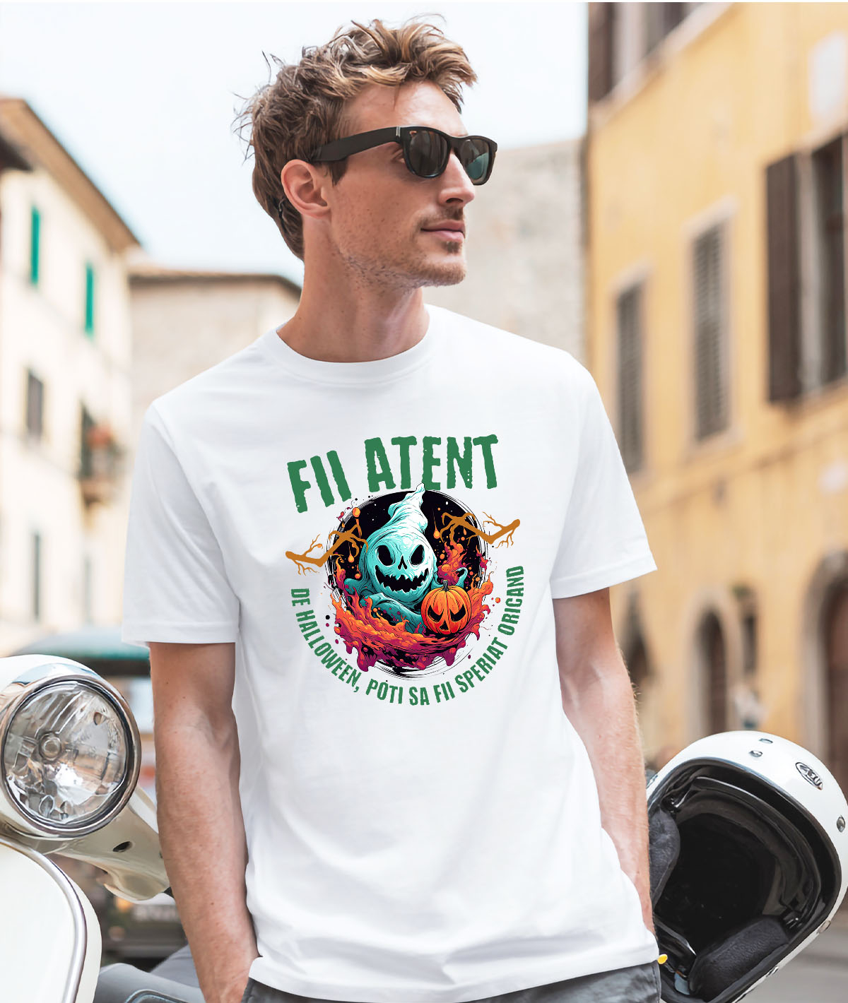 Tricou Barbati cu Fantoma Horror Dovleac Sarbatoare Infricosatoare, Copii, Colindat cu imprimeu pe Fata, 100% Bumbac, Alb, XL