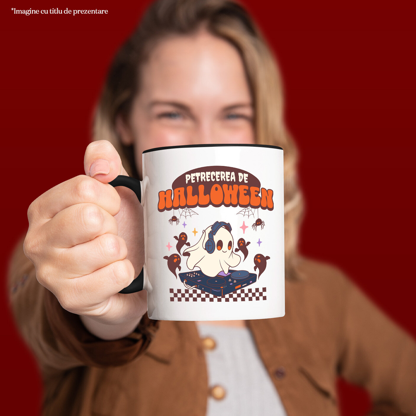 Cana Personalizata cu Fantoma Dj Petrecere de Hallowen Sarbatori Muzica Sarbatoare, Ceramica, 330ML, cu Maner Negru