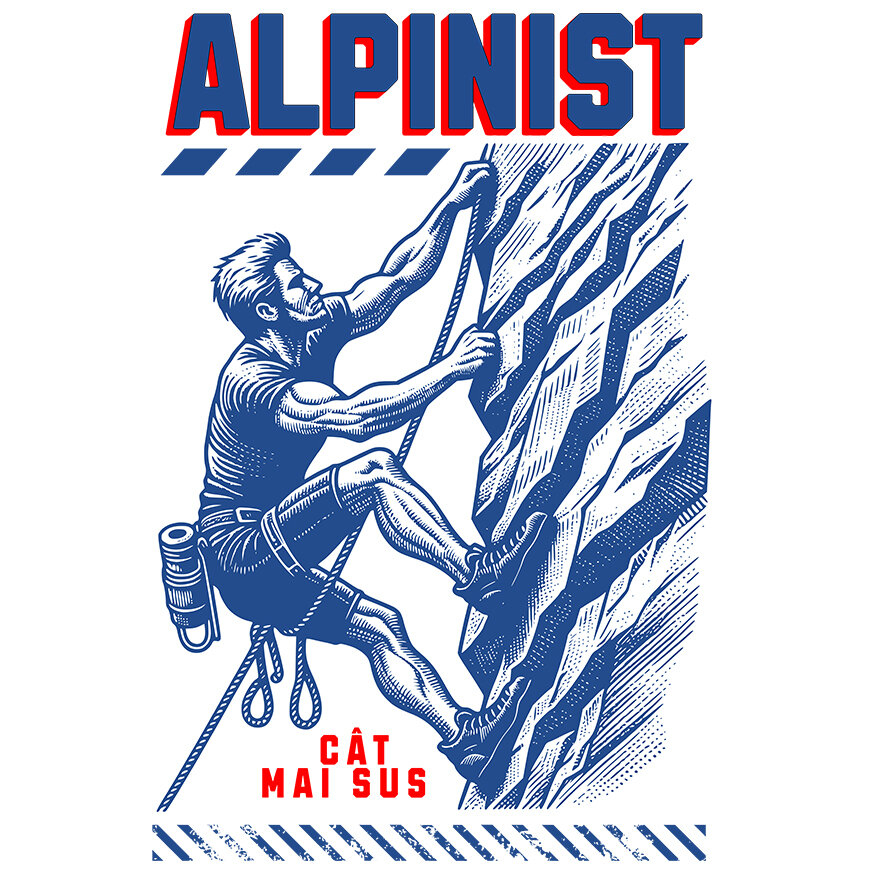 Sticker Personalizat cu Barbat Aventura Sport Catarare Pe Stanca Alpinist Cat Mai Sus Motivational cu Margini Albe, PVC Vinyl 10 cm