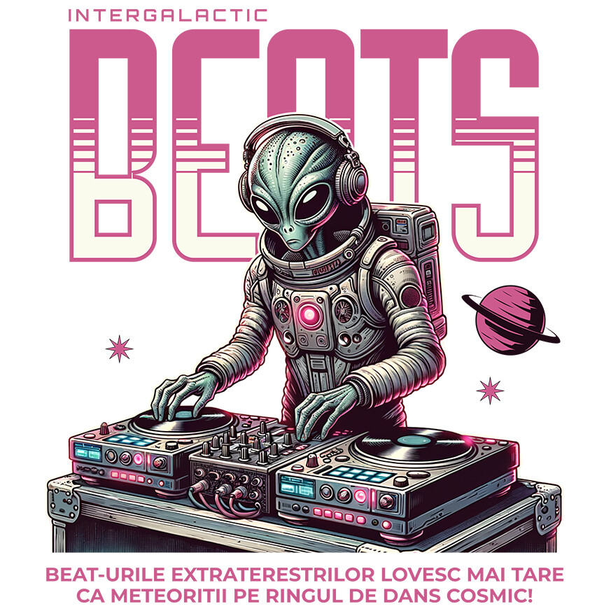 Sticker Personalizat cu Extraterestru In Costum Spatial DJ Hobby Meserie Muzica Distractie Petrecere cu Margini Albe, PVC Vinyl 10 cm