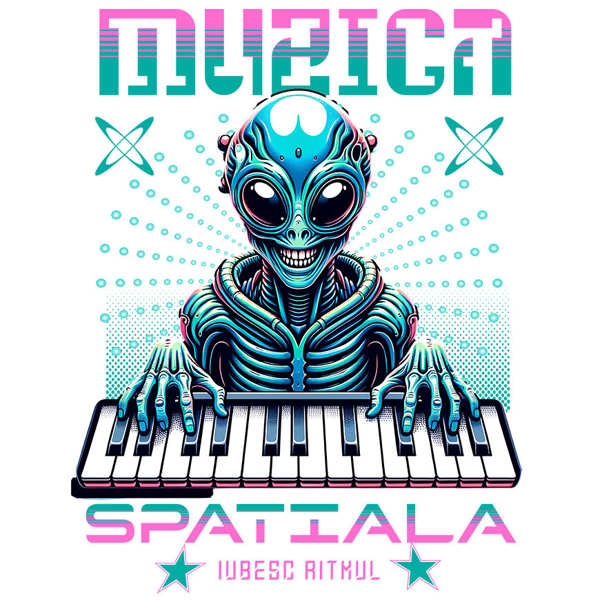 Sticker Personalizat cu Extraterestru Vesel In Costum Spatial DJ Hobby Meserie Muzica Distractie Petrecere cu Margini Albe, PVC Vinyl 10 cm