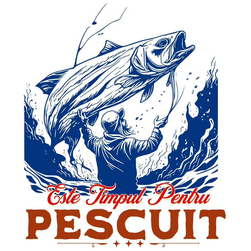 Sticker Personalizat cu Silueta Barbat Cu Peste Imens Hobby Text In Limba Romana Pescuit cu Margini Albe, PVC Vinyl 10 cm