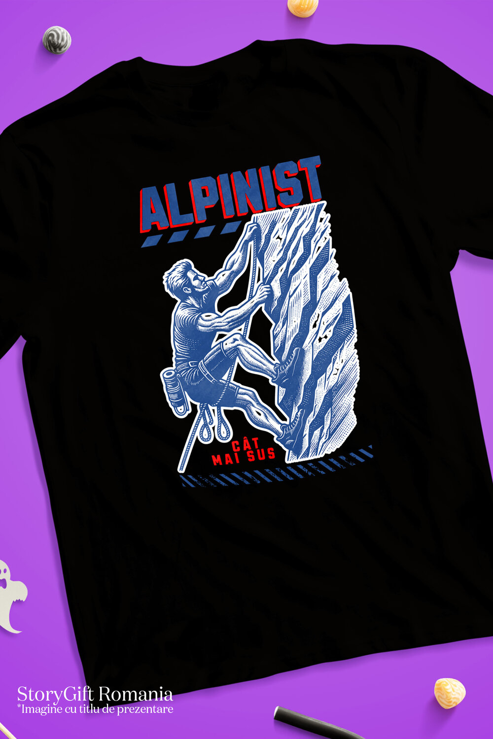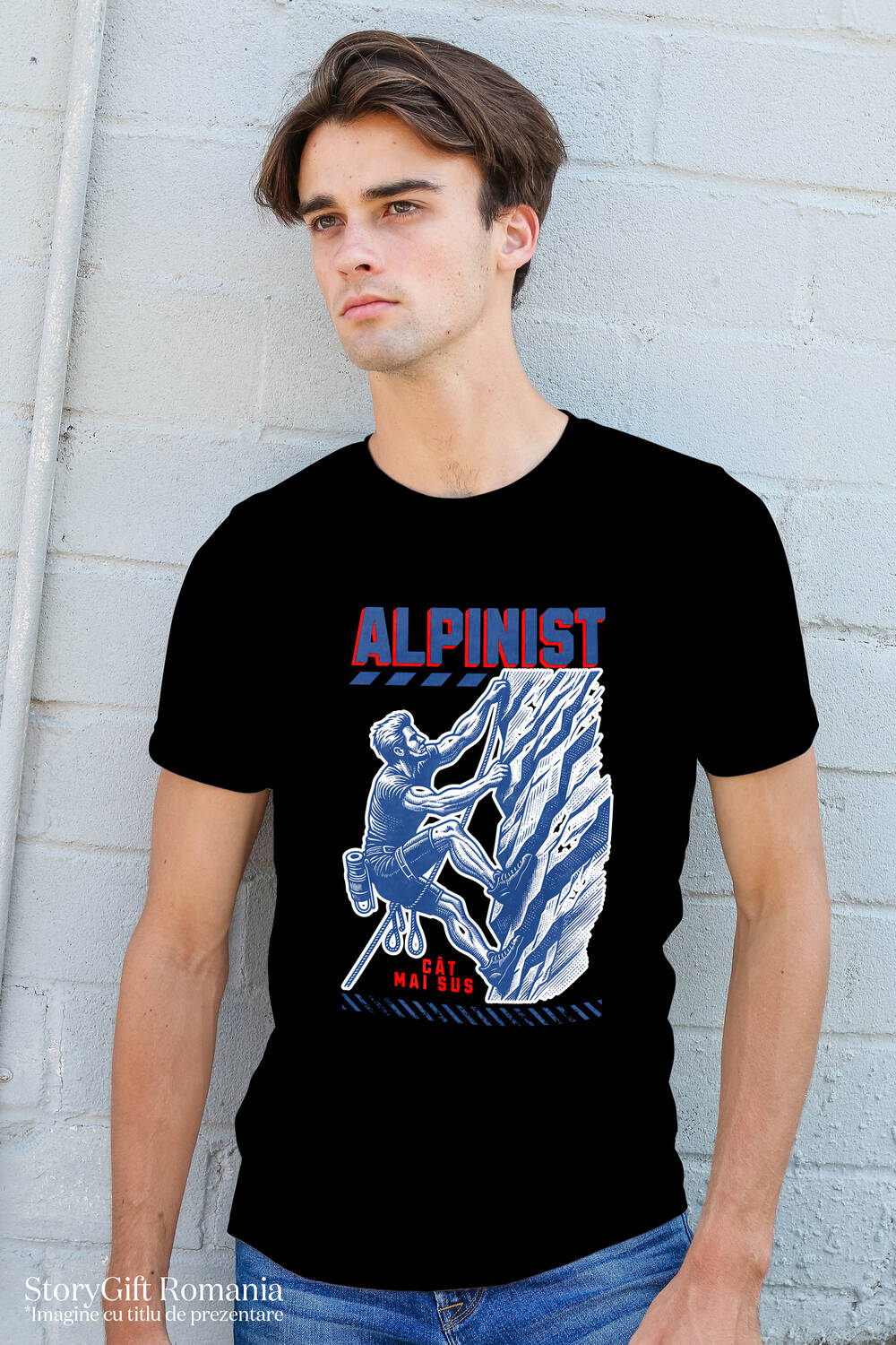 Tricou Barbati cu Barbat Aventura Sport Catarare Pe Stanca Alpinist Cat Mai Sus Motivational cu imprimeu pe Fata, 100% Bumbac, Negru, L