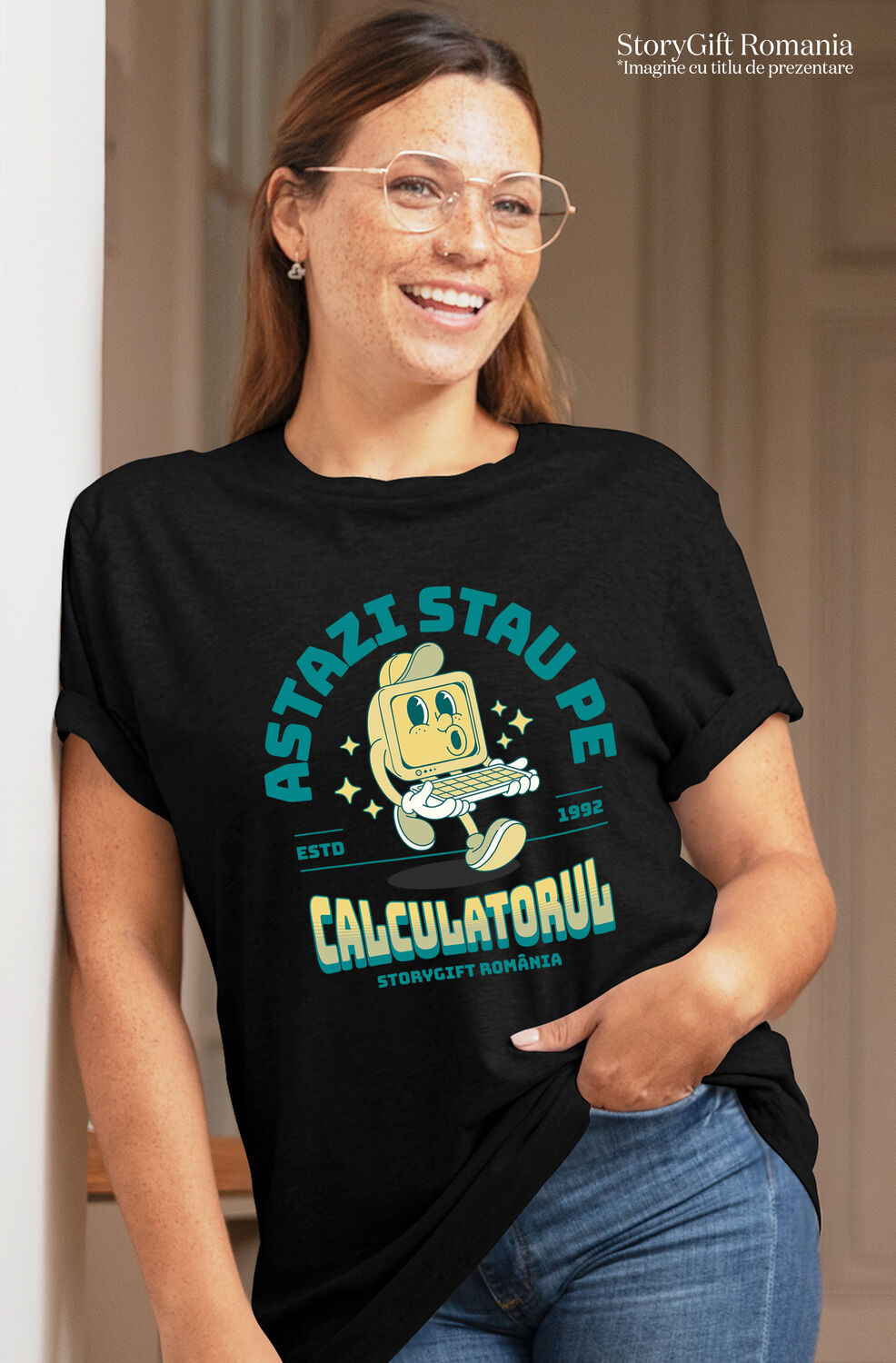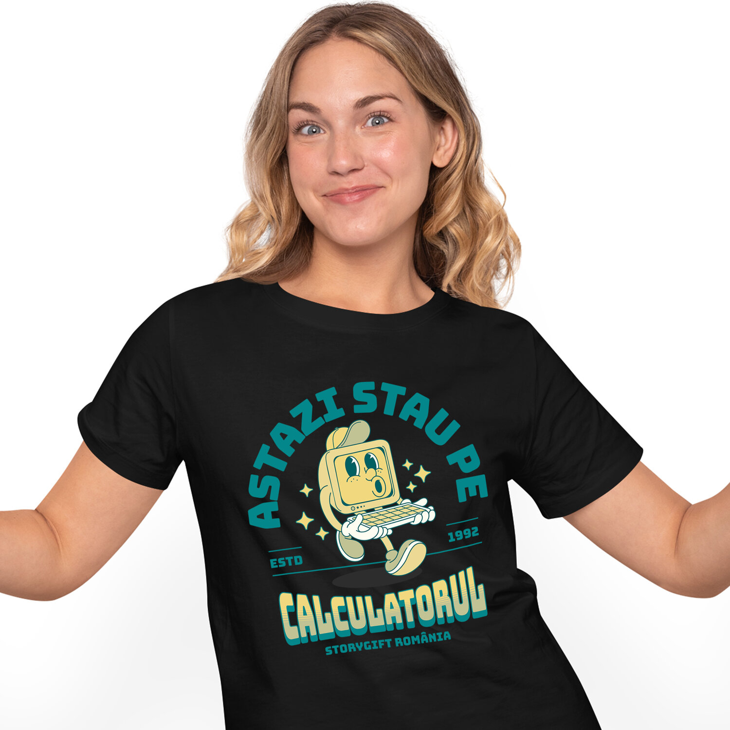 Tricou Femei cu Monitor Vintige Vesel Cu Sapca Tastatura Hobby Digital cu imprimeu pe Fata, 100% Bumbac, Negru, L