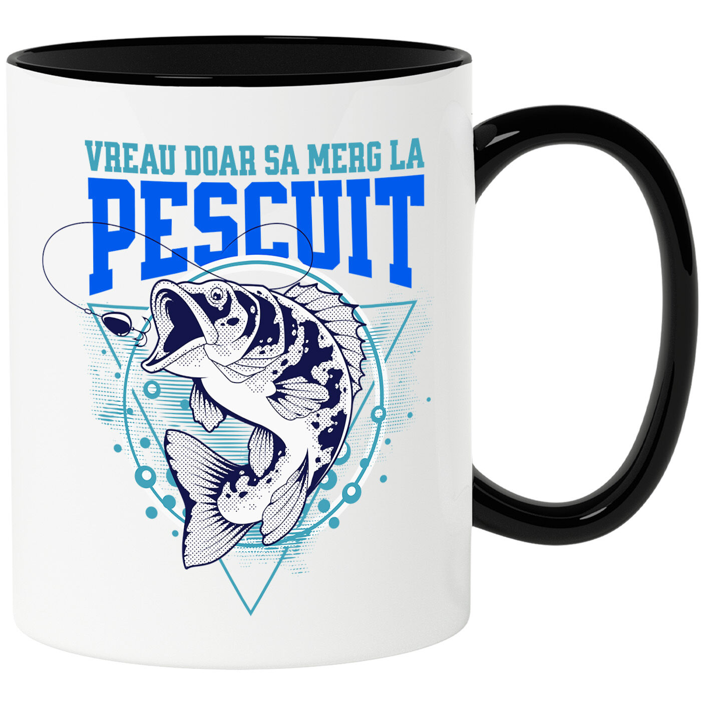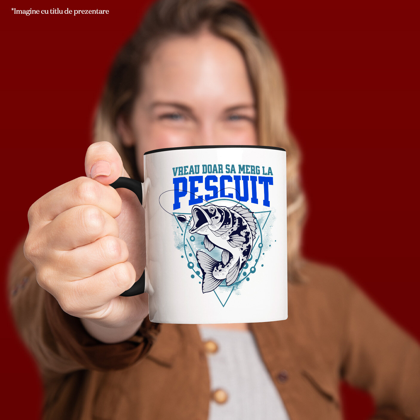 Cana Personalizata cu Design Abstract Peste Hobby Iubitorii De Natura Pescuit , Ceramica, 330ML, cu Maner Negru