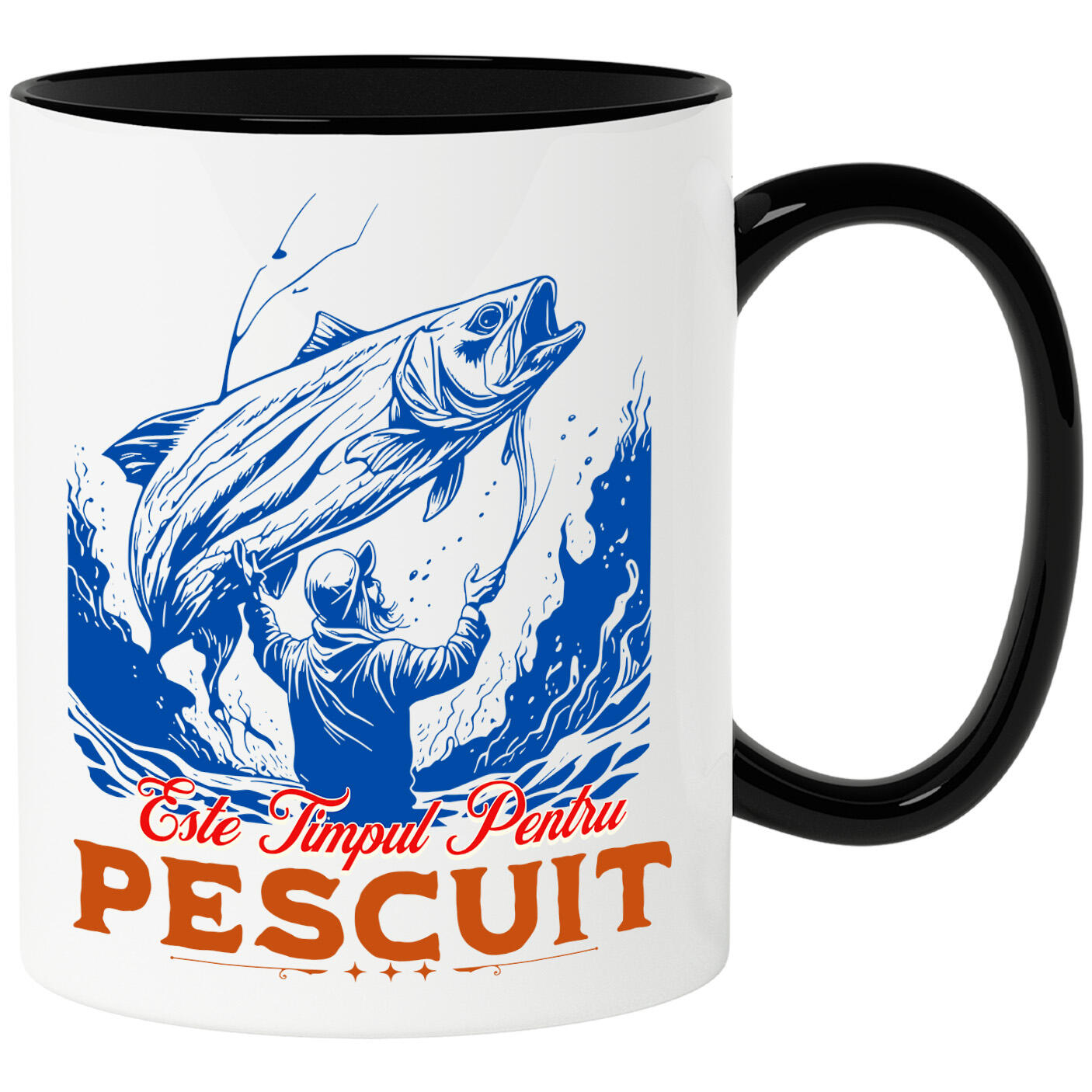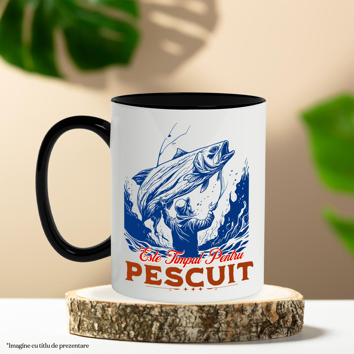 Cana Personalizata cu Silueta Barbat Cu Peste Imens Hobby Text In Limba Romana Pescuit , Ceramica, 330ML, cu Maner Negru