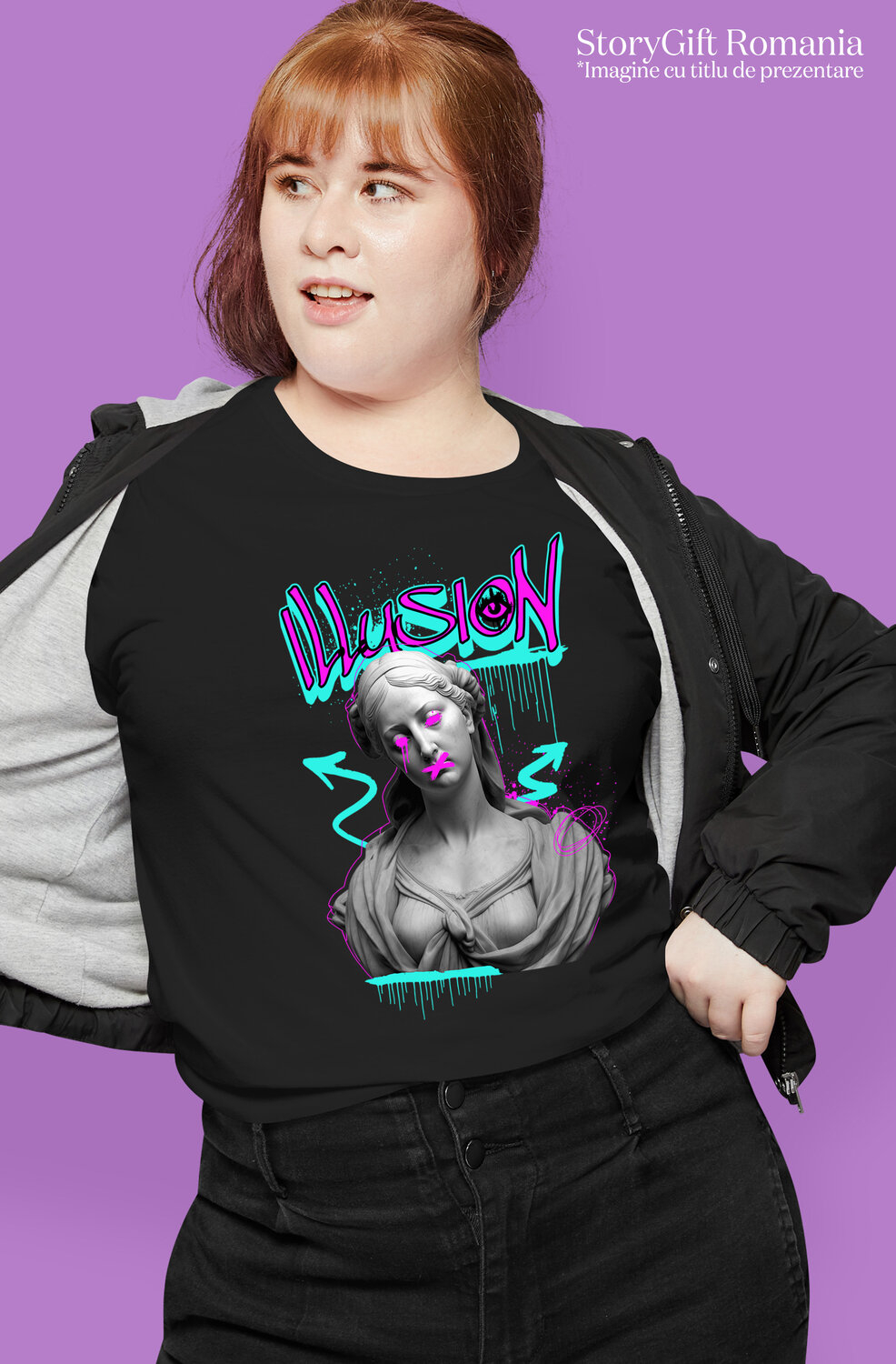 Tricou Femei cu Statuie Greceasca Stil Graffiti Urban Illusion Arta Abstracta cu imprimeu pe Fata, 100% Bumbac, Negru, XL