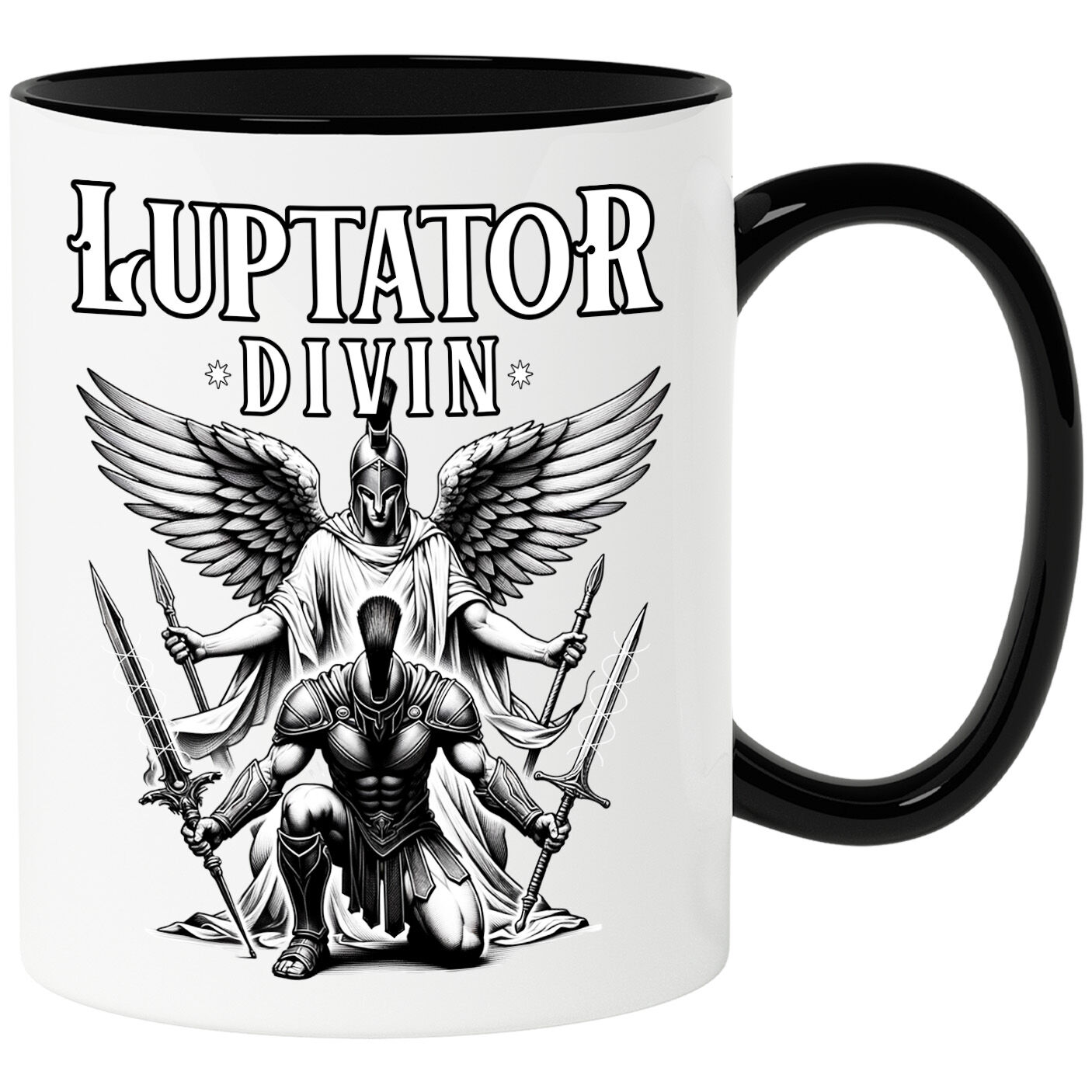 Cana Personalizata cu Inger Samurai Razboinic Cu Aripi Luptator Divin Motivational, Ceramica, 330ML, cu Maner Negru