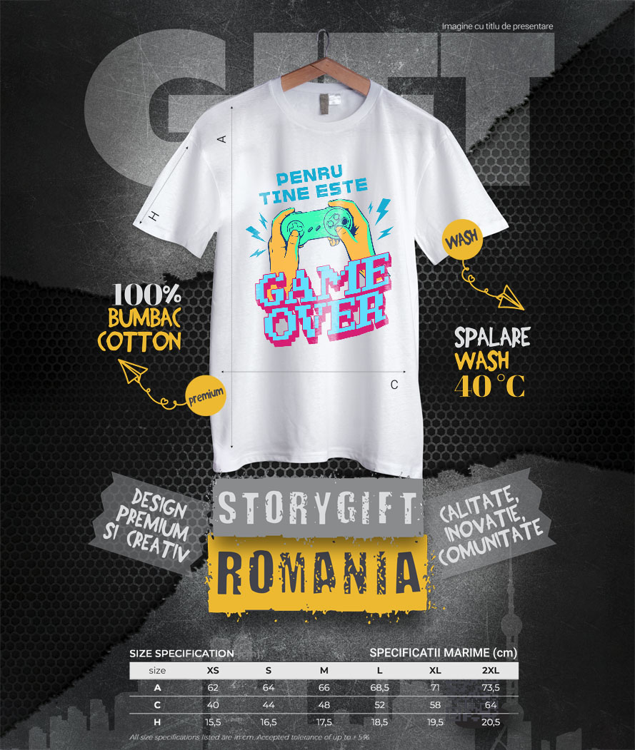 2. Alege pentru cine este tricoul – bărbat, femeie sau copil – și selectează mărimea potrivită pentru un fit perfect!