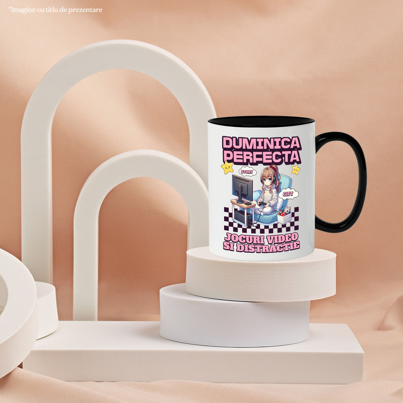 Cana Personalizata cu Fata Stil Anime Iubitorii De Jocuri Video, gamer, Relaxare, Lume Digitala, Ceramica, 330ML, cu Maner Negru