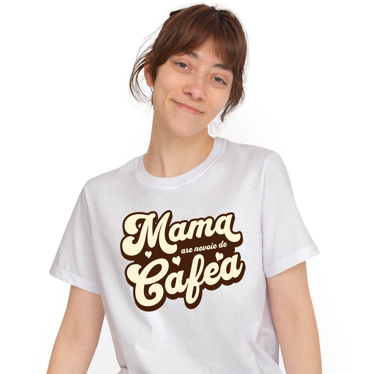 Tricou Femei cu design Cu Inimioare Iubire dragoste mama Cafea, Valentine's Day cu imprimeu pe Fata, 100% Bumbac, Alb, S