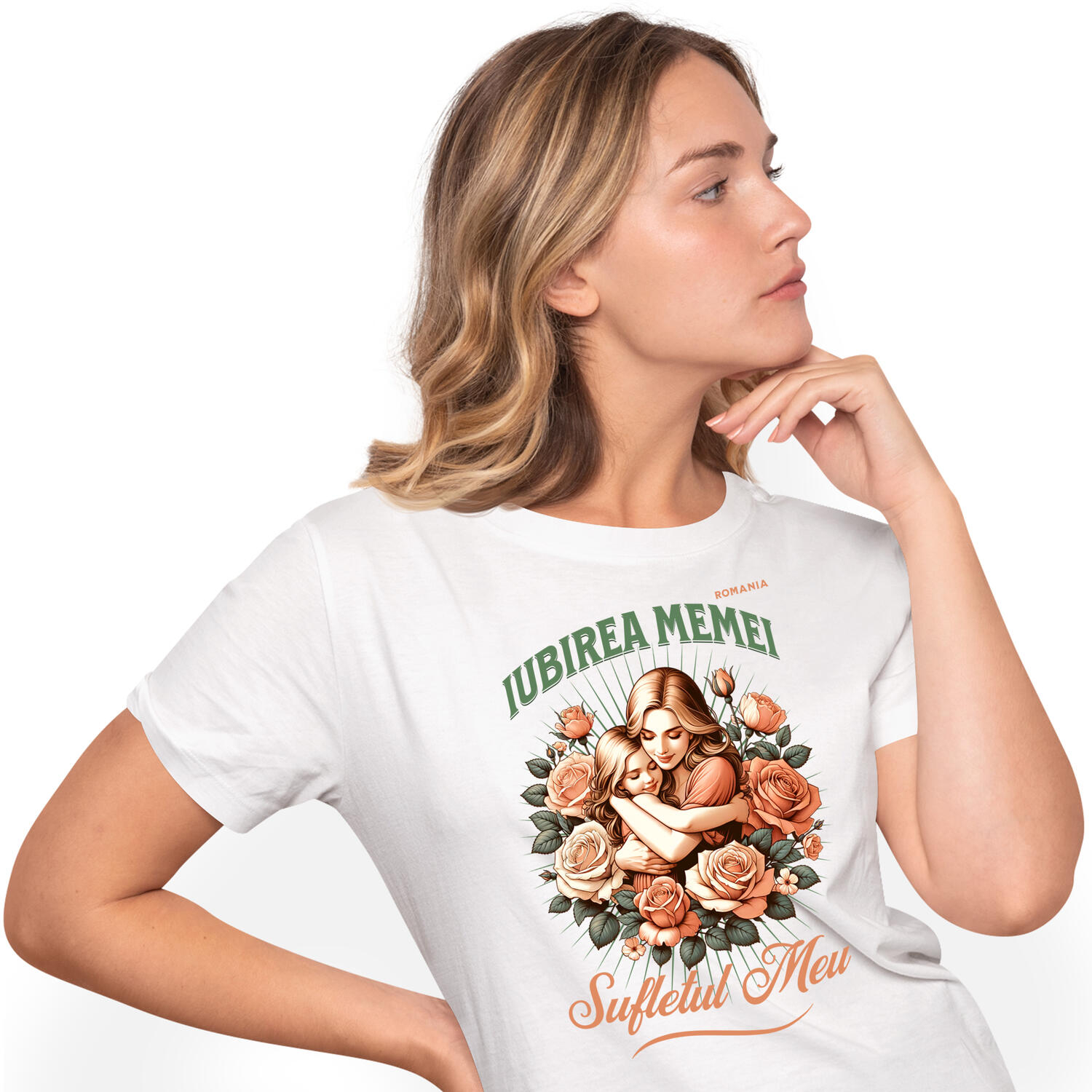 Tricou Femei cu Mama Si Fata Flori Trandafiri Roz, natura, familie, Iubire Eterna, cu imprimeu pe Fata, 100% Bumbac, Alb, XS