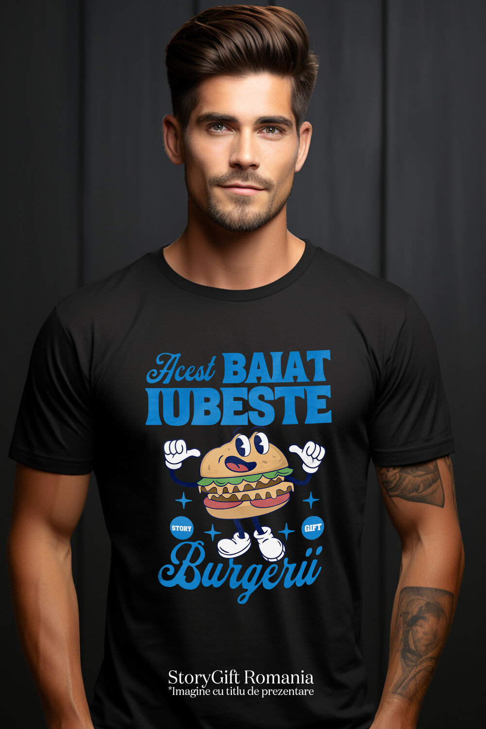 Tricou Barbati cu Dubluchessburger Vesel Fast Food Pofticios Dieta cu imprimeu pe Fata, 100% Bumbac, Negru, L