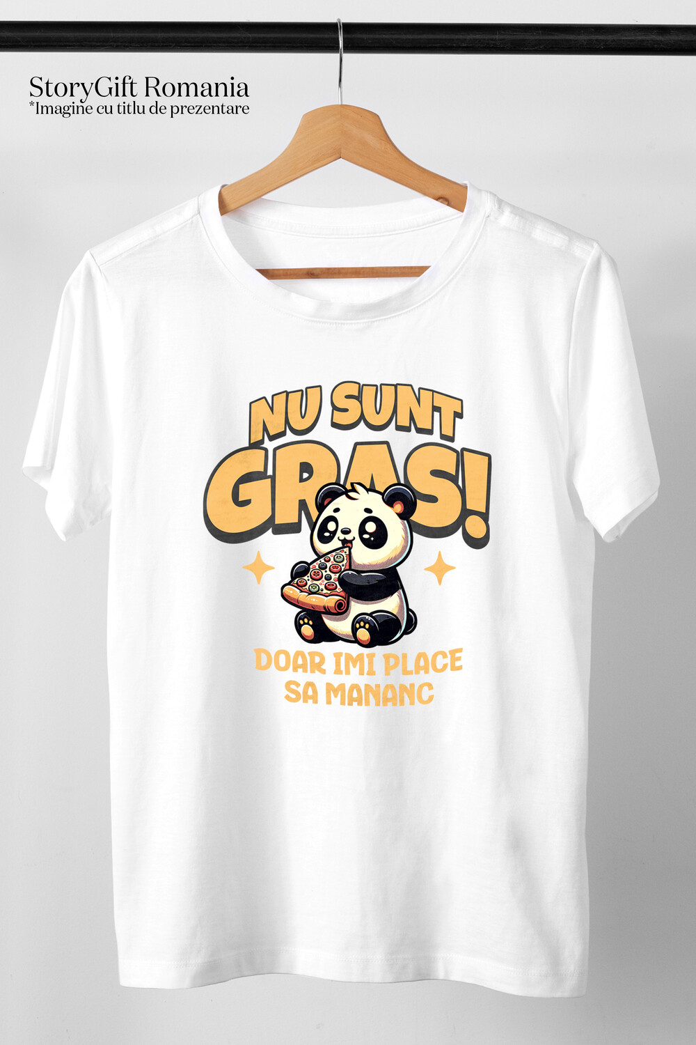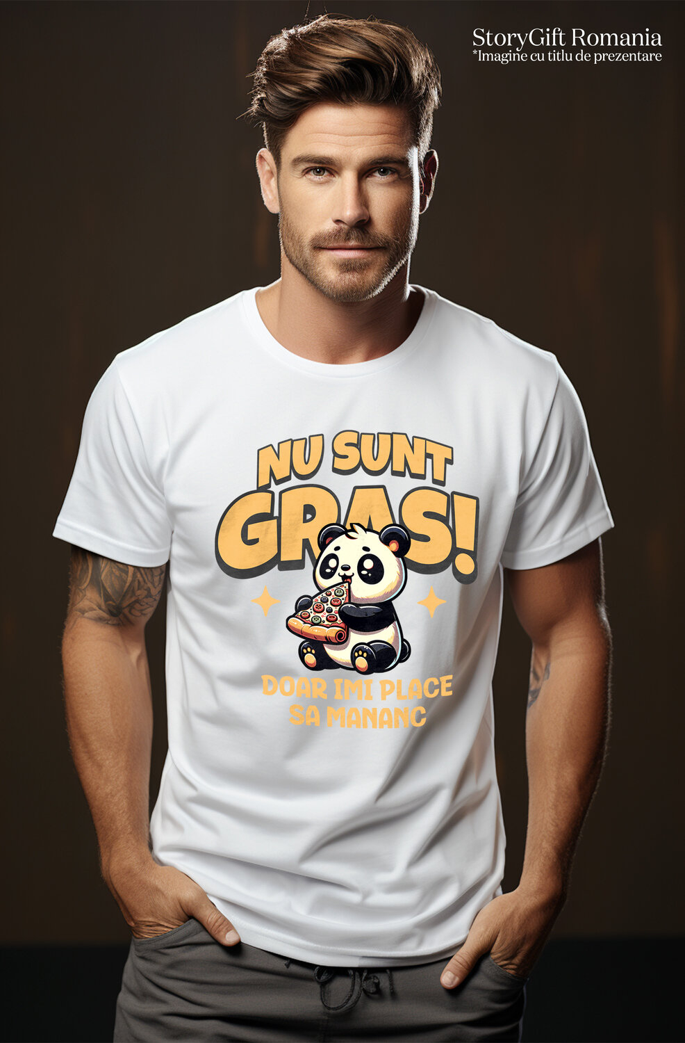 Tricou Barbati cu Panda Gras Cu Felie Pizza Vesel Text Haios Iubitorii De Mancare cu imprimeu pe Fata, 100% Bumbac, Alb, M