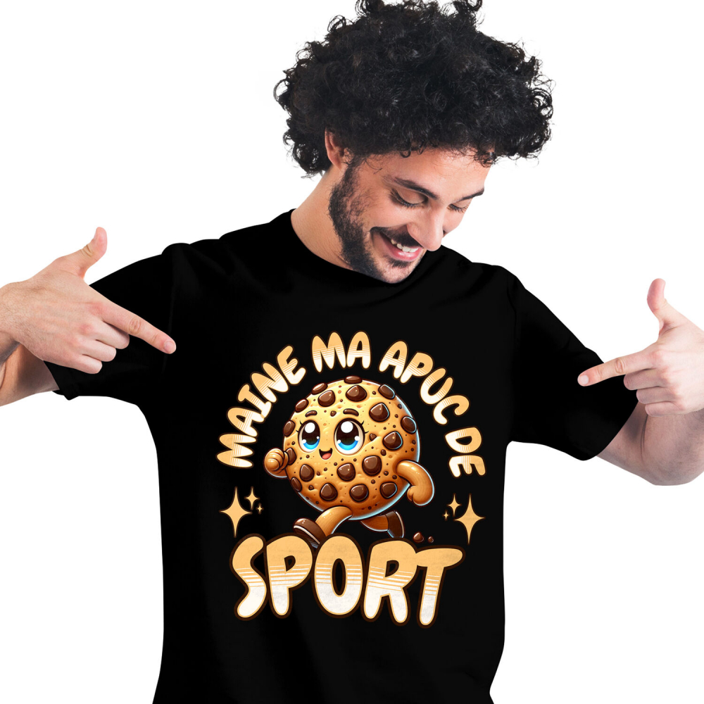 Tricou Barbati cu Prajitura Biscuite Vesel Alergand, Replica, Dieta, Slabire cu imprimeu pe Fata, 100% Bumbac, Negru, L