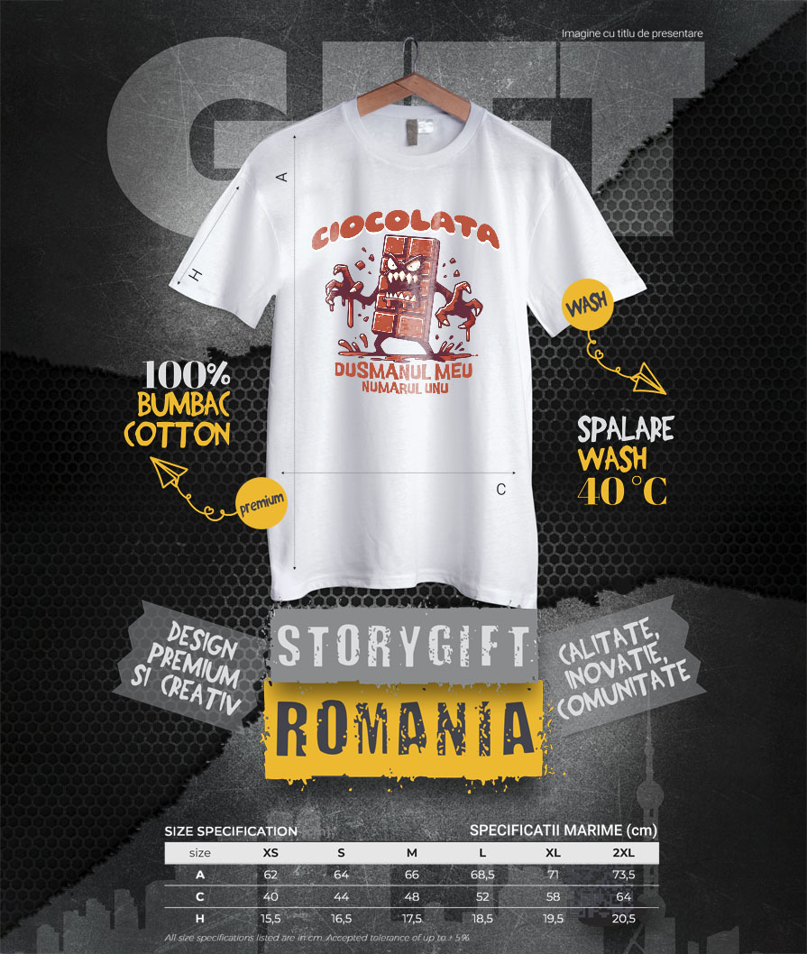 Tricou Femei cu Tableta De Ciocolata Furioasa Monstru Cu Gheare Dulciuri Desert cu imprimeu pe Fata, 100% Bumbac, Alb, L