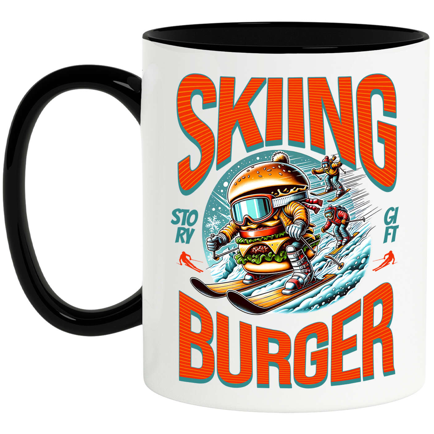 Cana Personalizata cu Dublu Burger imens Schiuri Pe Partie Cu ochelari De Sport Fast Food, Ceramica, 330ML, cu Maner Negru