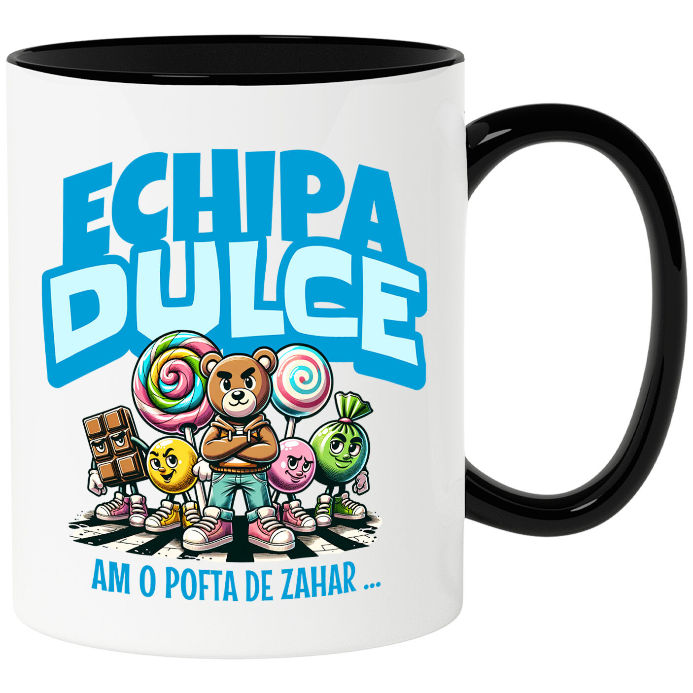 Cana Personalizata cu Dulciuri Razboi Acadele Bomboane tableta Ciocolata Urs Echipa Dulce Am Pofta De Zahar, Ceramica, 330ML, cu Maner Negru