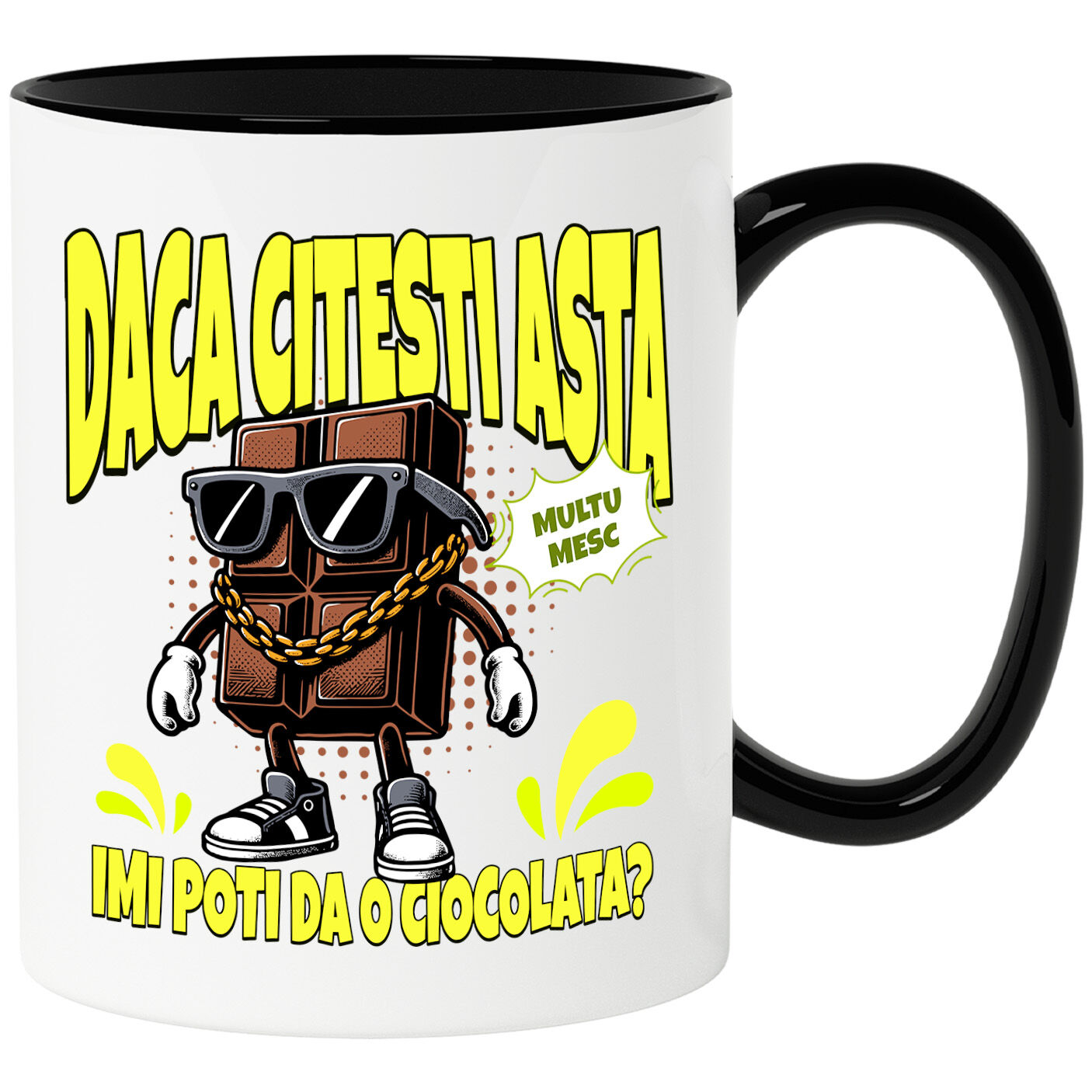 • Design unic: Mesajul tău + culoarea aleasă + stilul grafic preferat = o cană cu adevărat specială.