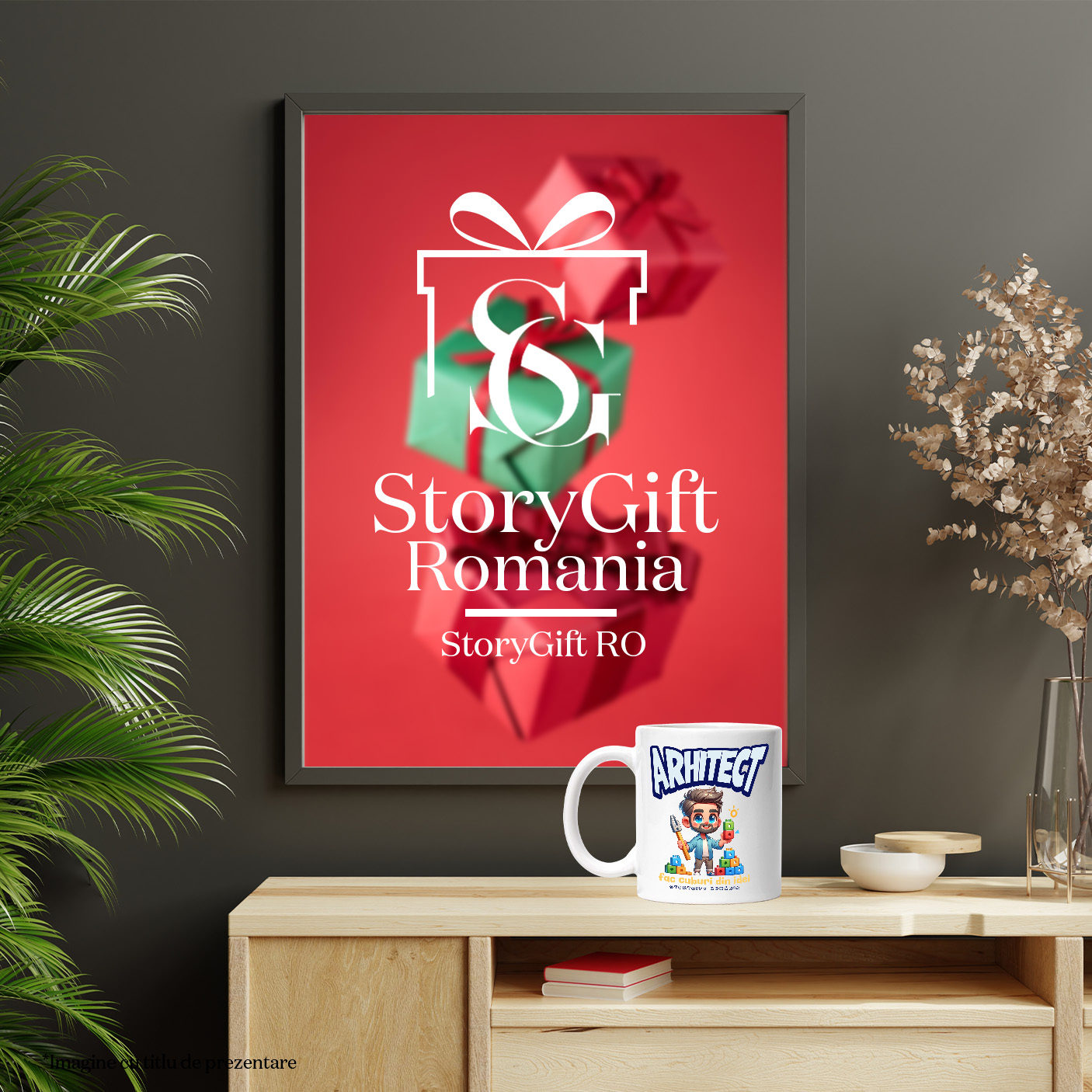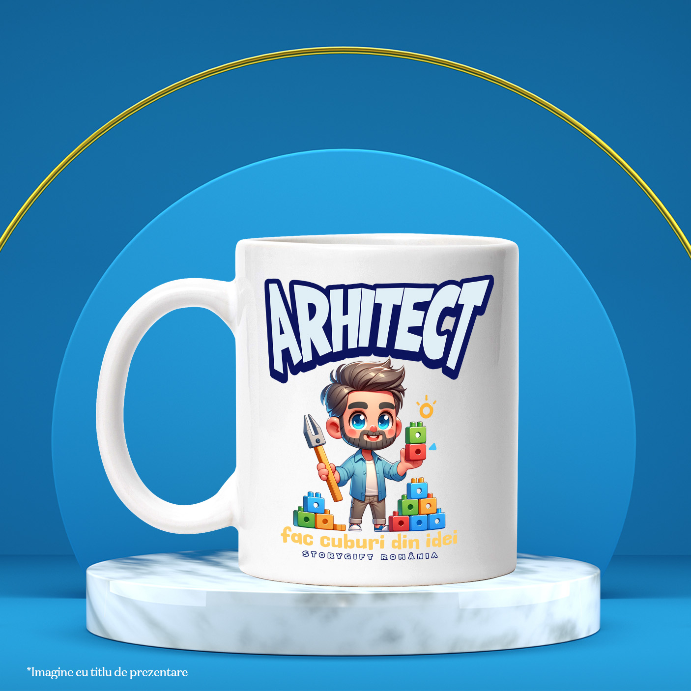Cana Arhitect Text Fac cuburi din idei Inspiratie Desen, 330ml, Ceramic cu Maner Alb