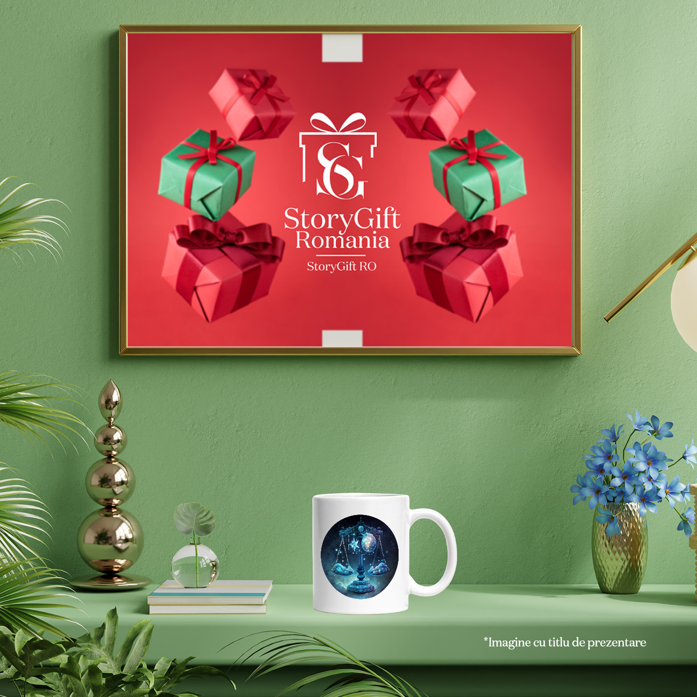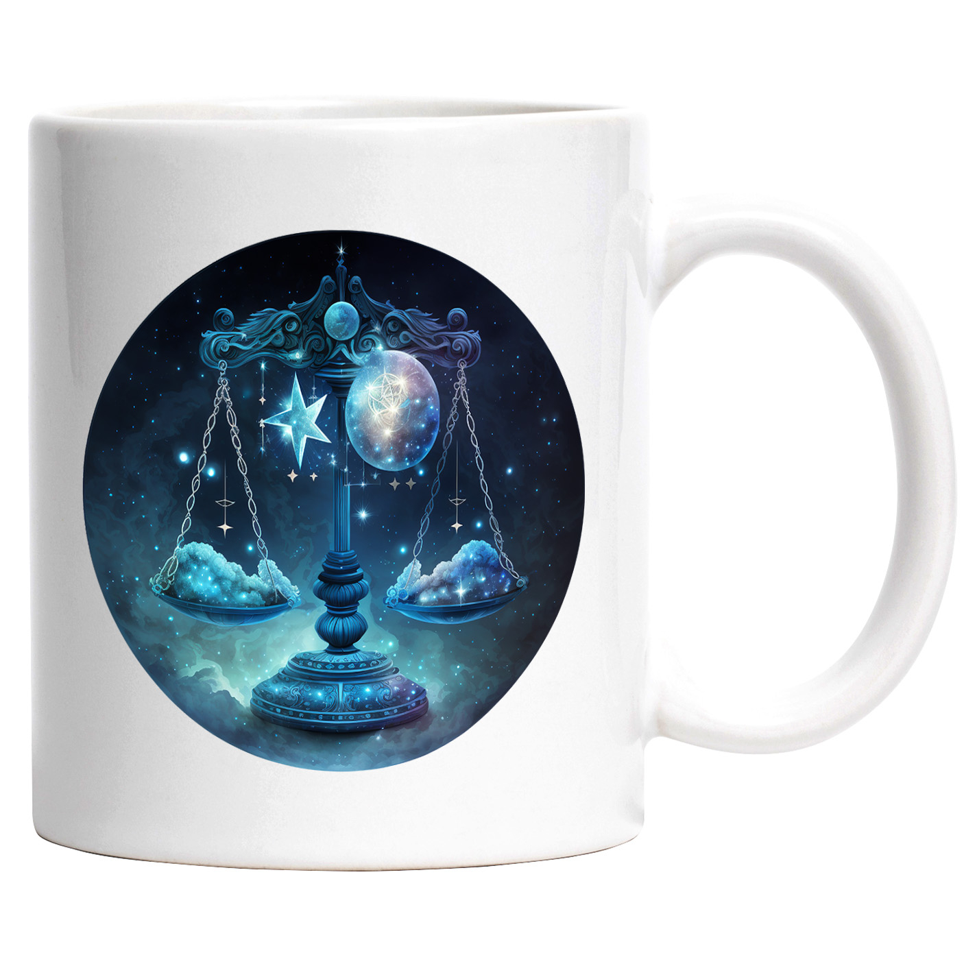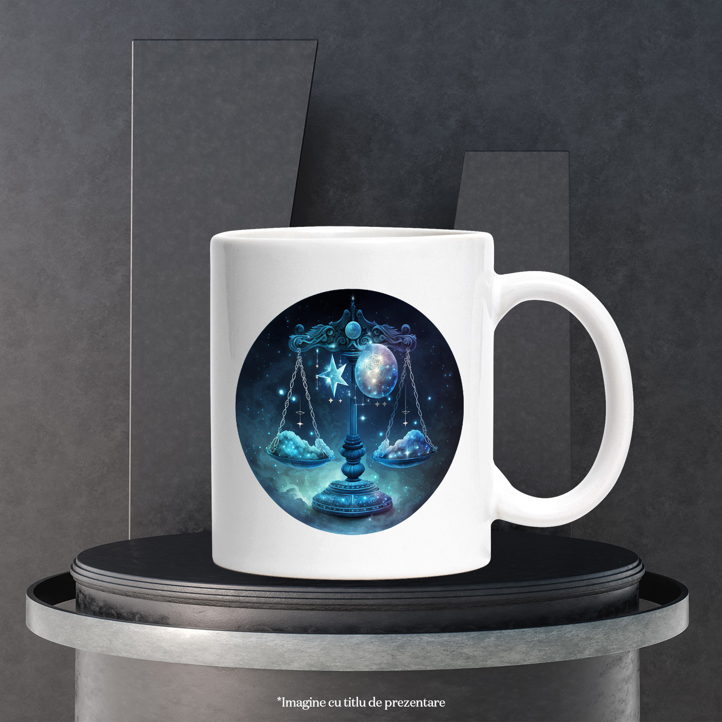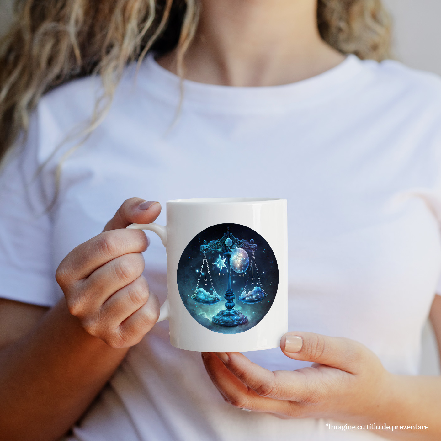 Cana cu o balanta, ilustratie, zodie, nori, cerc, astral, cer, pace, armonie, 330ml, Ceramic cu Maner Alb