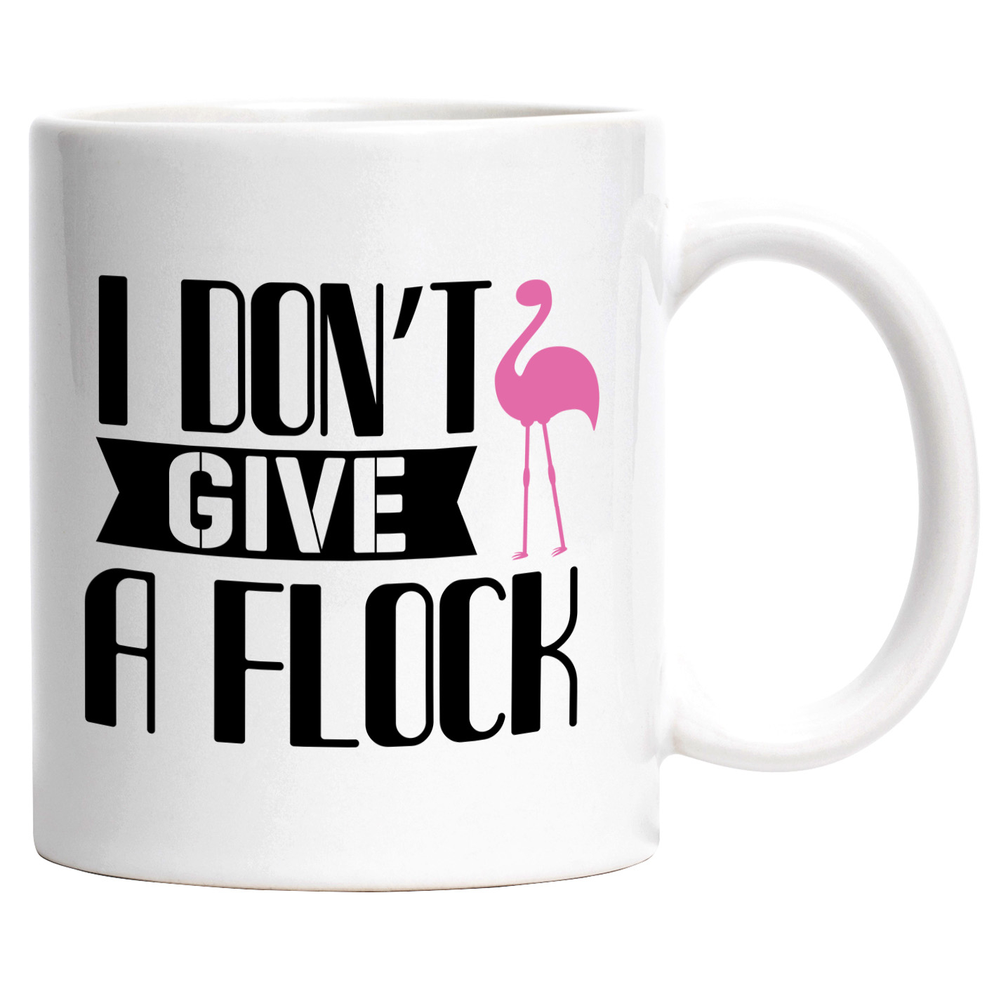 Cana cu un flamingo si textul ""I don't give a flock"" - nu imi pasa cu Maner Alb