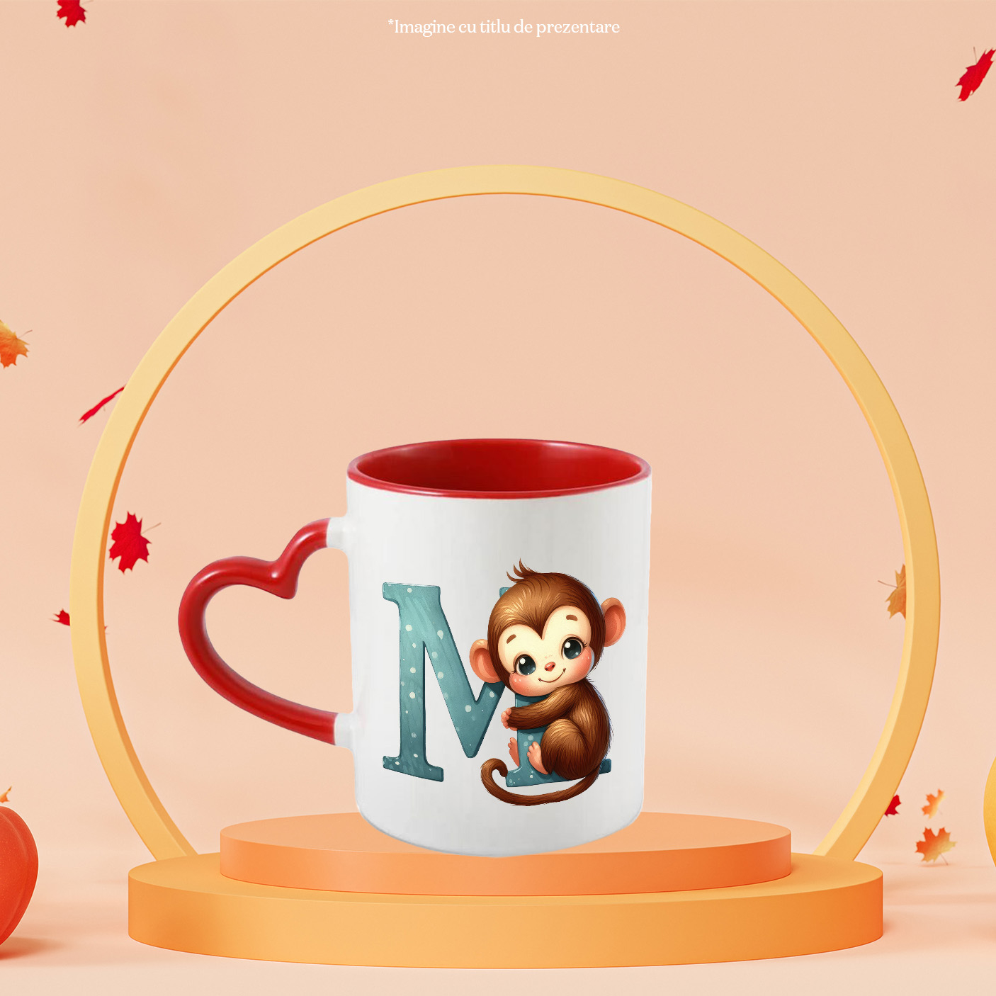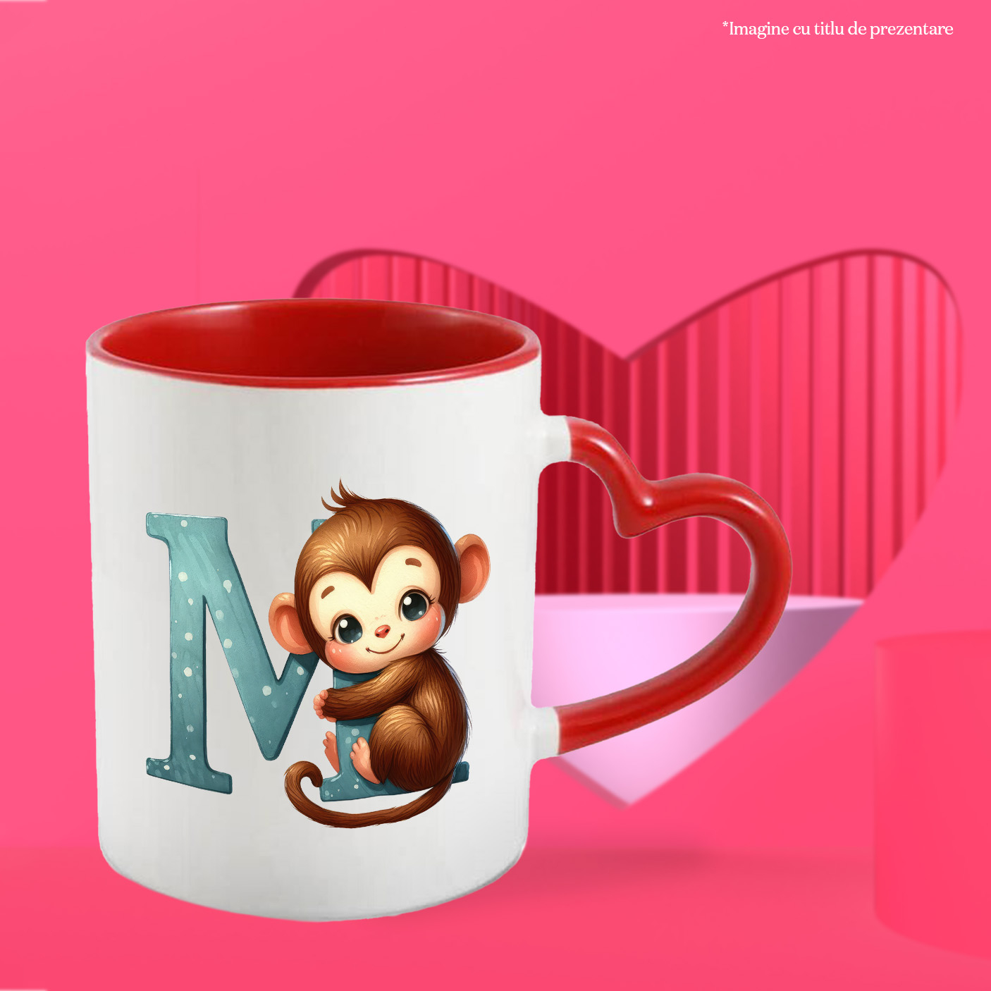 Cana cu o maimuta cu litera ""M"", ilustratie, pentru copii, scoala, elev, abecedar, alfabet cu Maner Inima Rosie