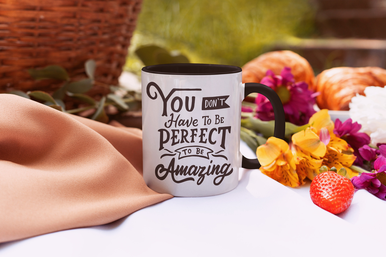 Cana Cu Mesaj You Don't Have To Be Perfect To Be Amazing, Dragobete, Valentine's Day, Partener, Negru, 330 ml, Maner Negru