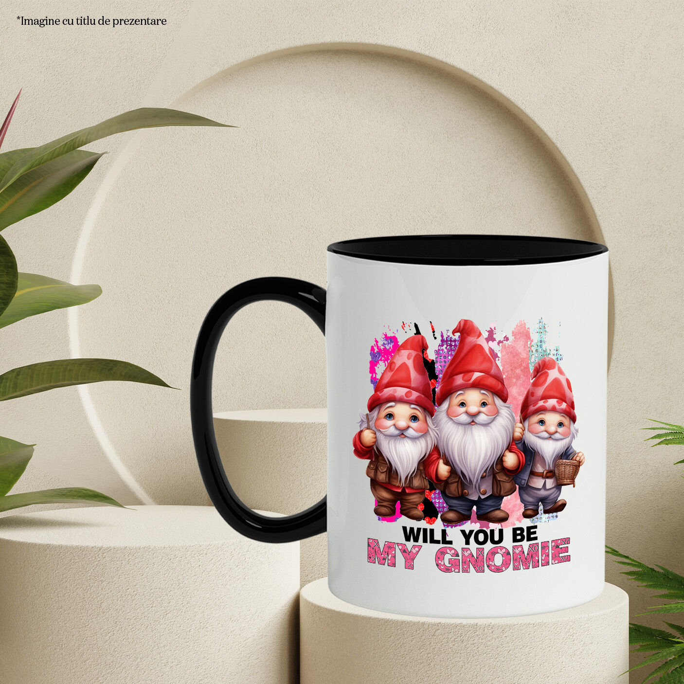 Cana cu pitici cu mesajul "Will you be my gnomie", caciuli, Valentine's Day, ilustratie, iubire, dragoste, vei fi iubita mea, afectiune cu Maner Negru