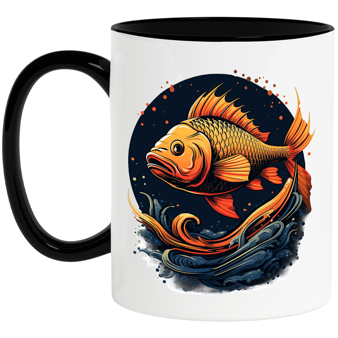 Cana cu un peste, ilustratie, cerc, apa, mare, pestisorul auriu cu Maner Negru