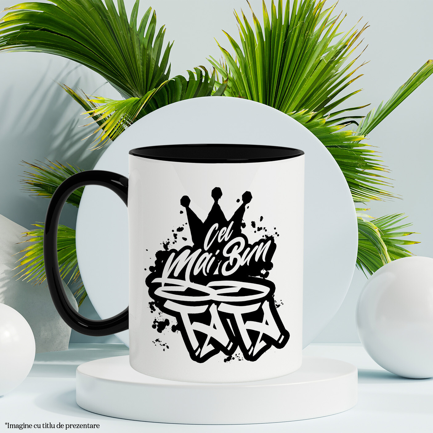 Cana Pentru Cel Mai Bun tata, Apreciere, Cadou, Rasplata, Multumire, 330ml, Ceramica cu Maner Negru