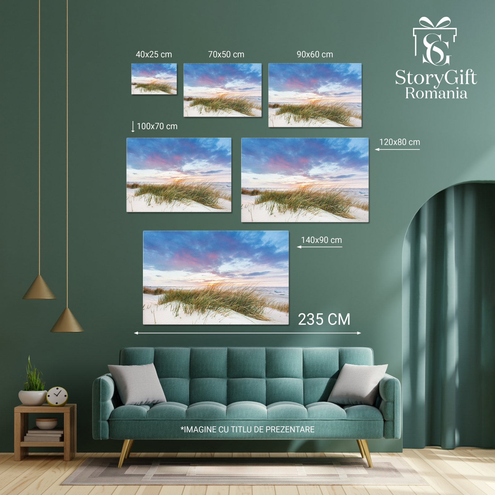 Notă importantă: Precizăm că imaginile de pe site au scop ilustrativ. Detaliile reale ale produsului pot prezenta diferențe minore față de reprezentările digitale, datorită variațiilor de culoare, mărimea tabloului și rezoluția dispozitivelor. Disponibilitatea în diverse dimensiuni ne permite să satisfacem nevoile dvs. specifice; pentru a vă asigura de alegerea potrivită, recomandăm măsurarea atentă a spațiului alocat.