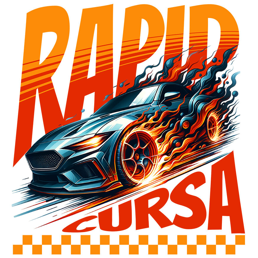 Sticker Personalizat cu Masina Neagra Sport In Flacari Iubitorii De Viteza Rapid Cursa. Ilegal, cu Margini Albe, PVC Vinyl 10 cm