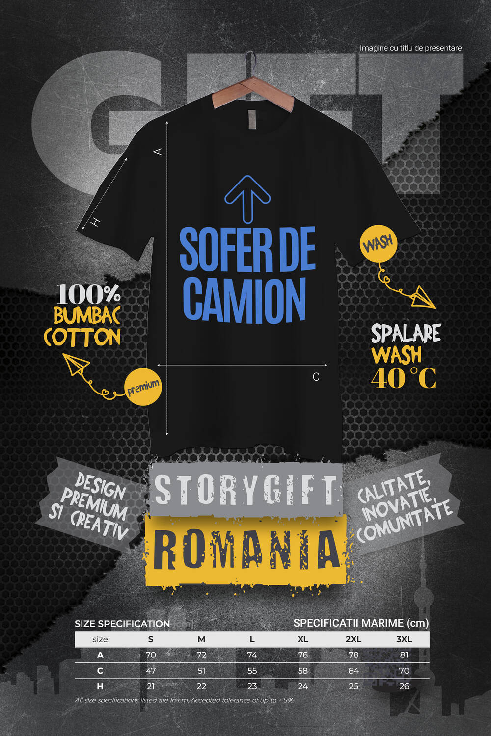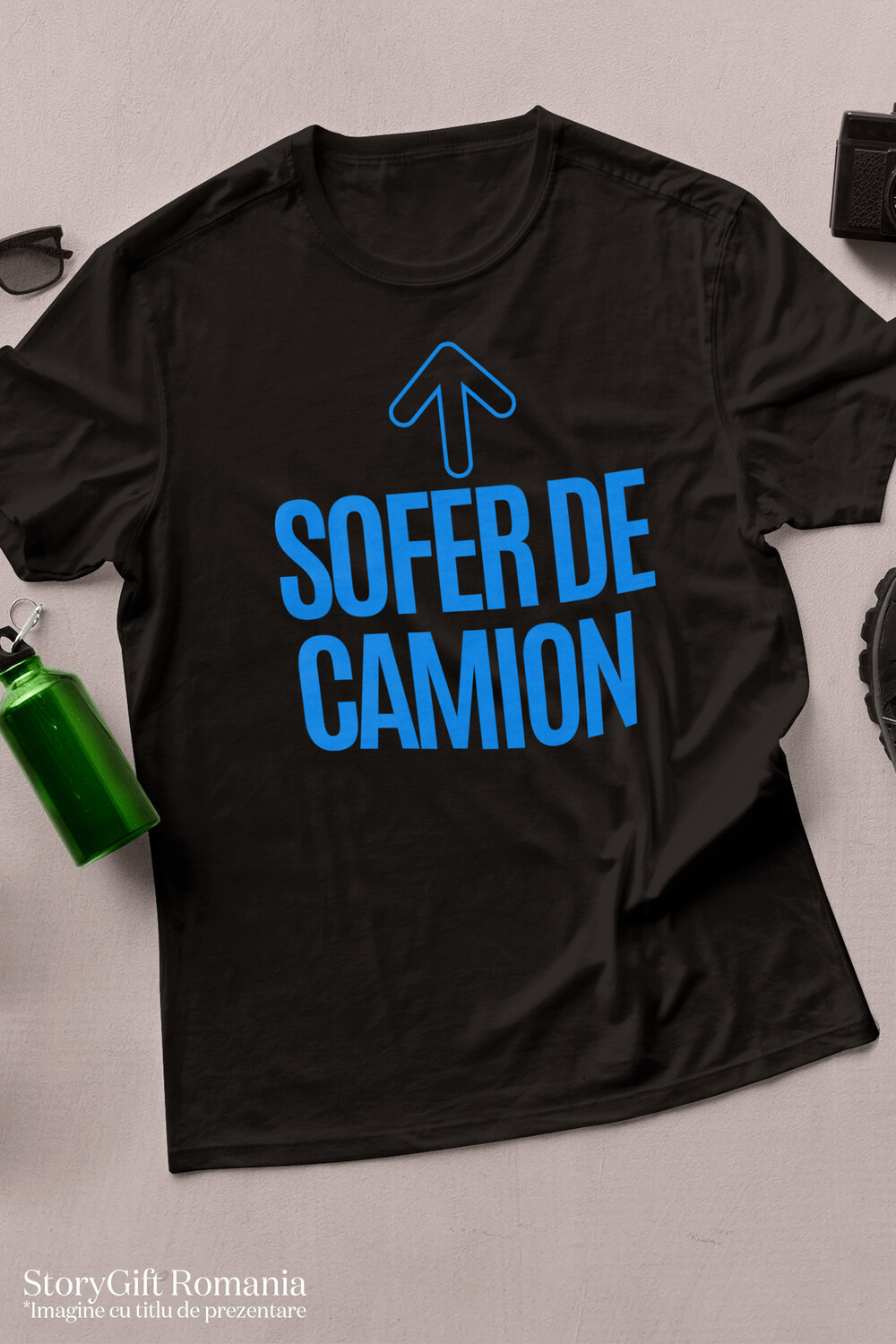 Tricou Barbati cu Iubitor De Camioane Meserie Sageata Masina Calatorie cu imprimeu pe Fata, 100% Bumbac, Negru, L