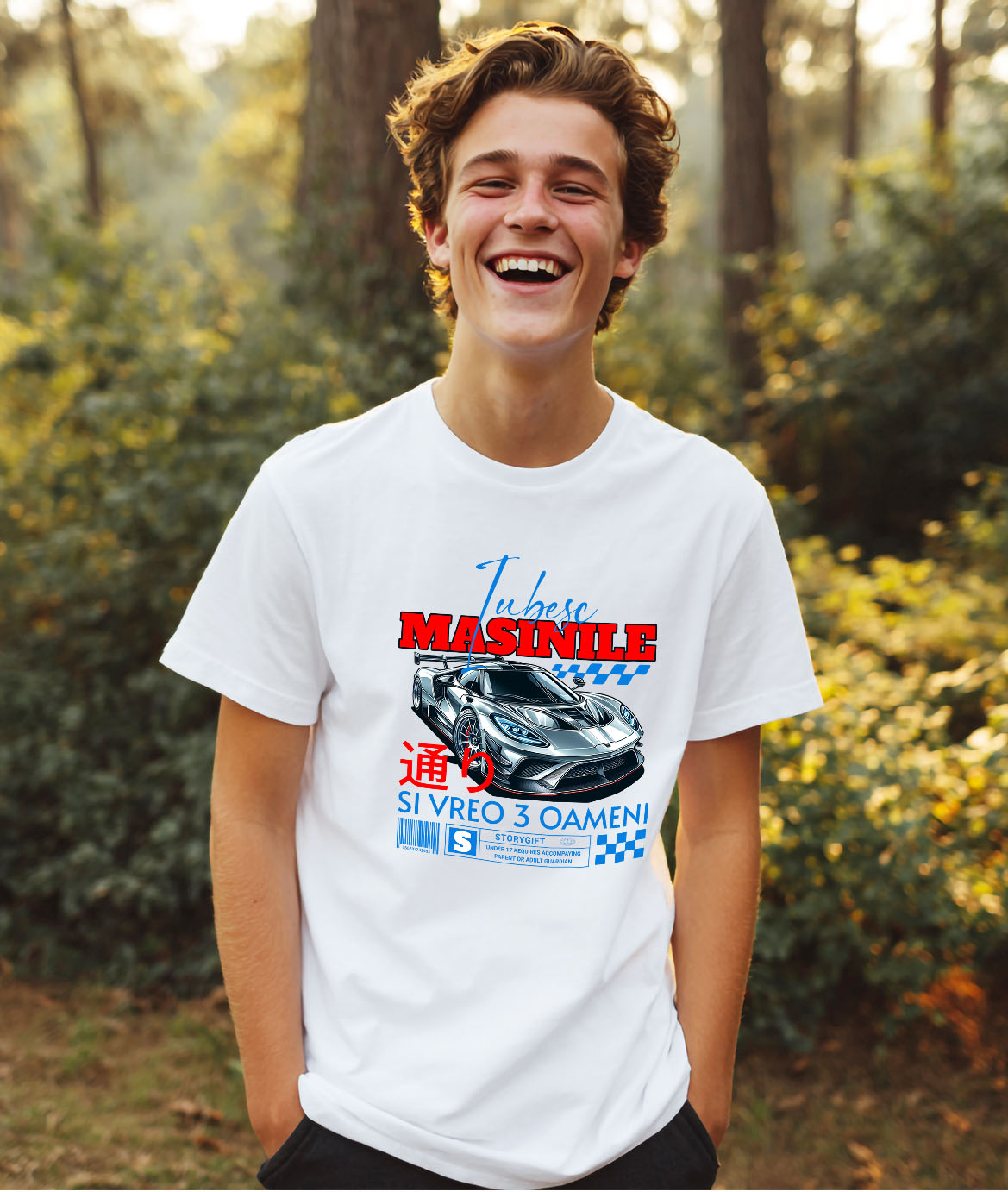 Tricou Barbati cu Masina Lux Moderna Pentru Curse Sport Iubesc Masinile Si Vreo 3 Oameni cu imprimeu pe Fata, 100% Bumbac, Alb, M