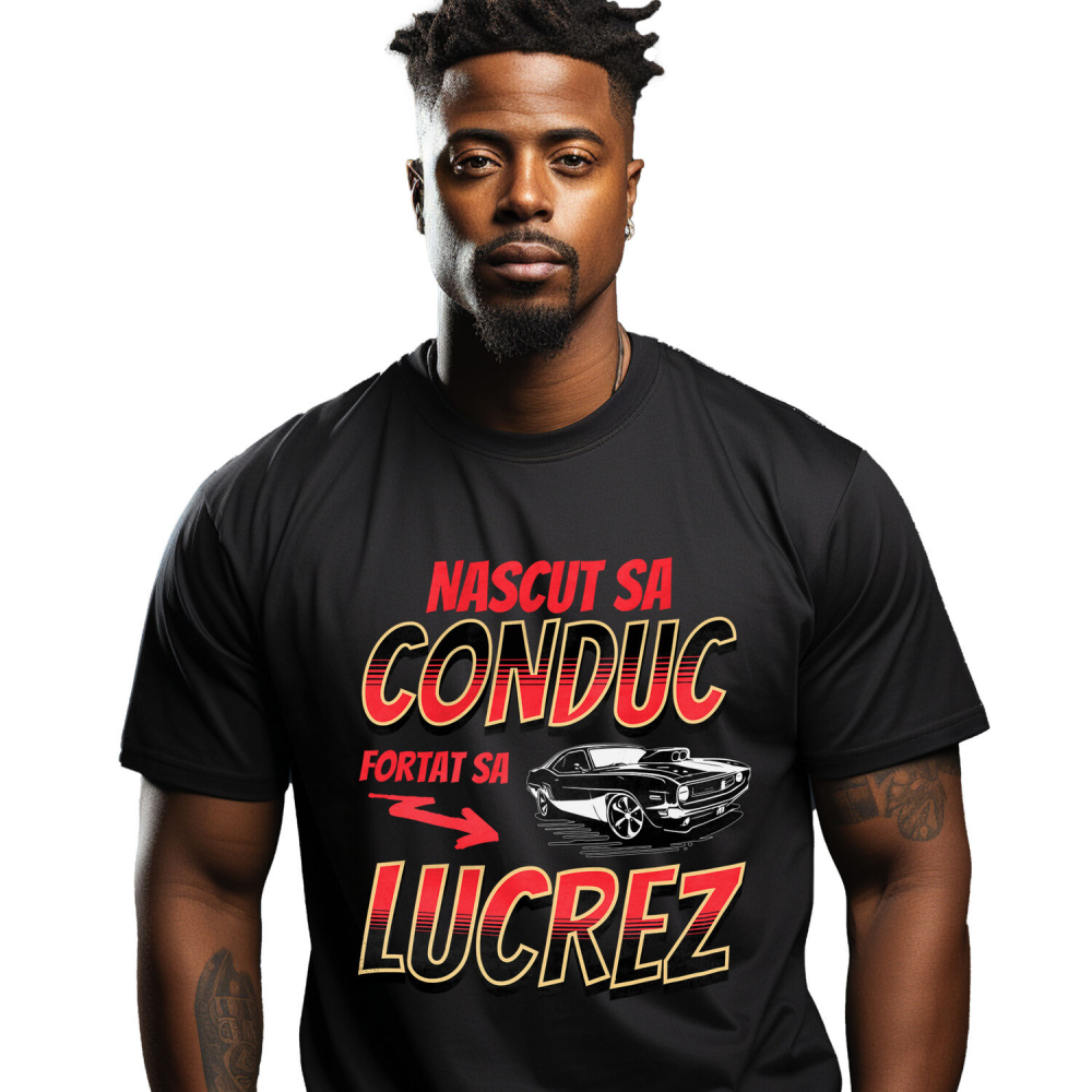 Tricou Barbati cu Masina vintige Tunata Curse Ilegale Pasionati De Viteza Si Modificari auto cu imprimeu pe Fata, 100% Bumbac, Negru, L