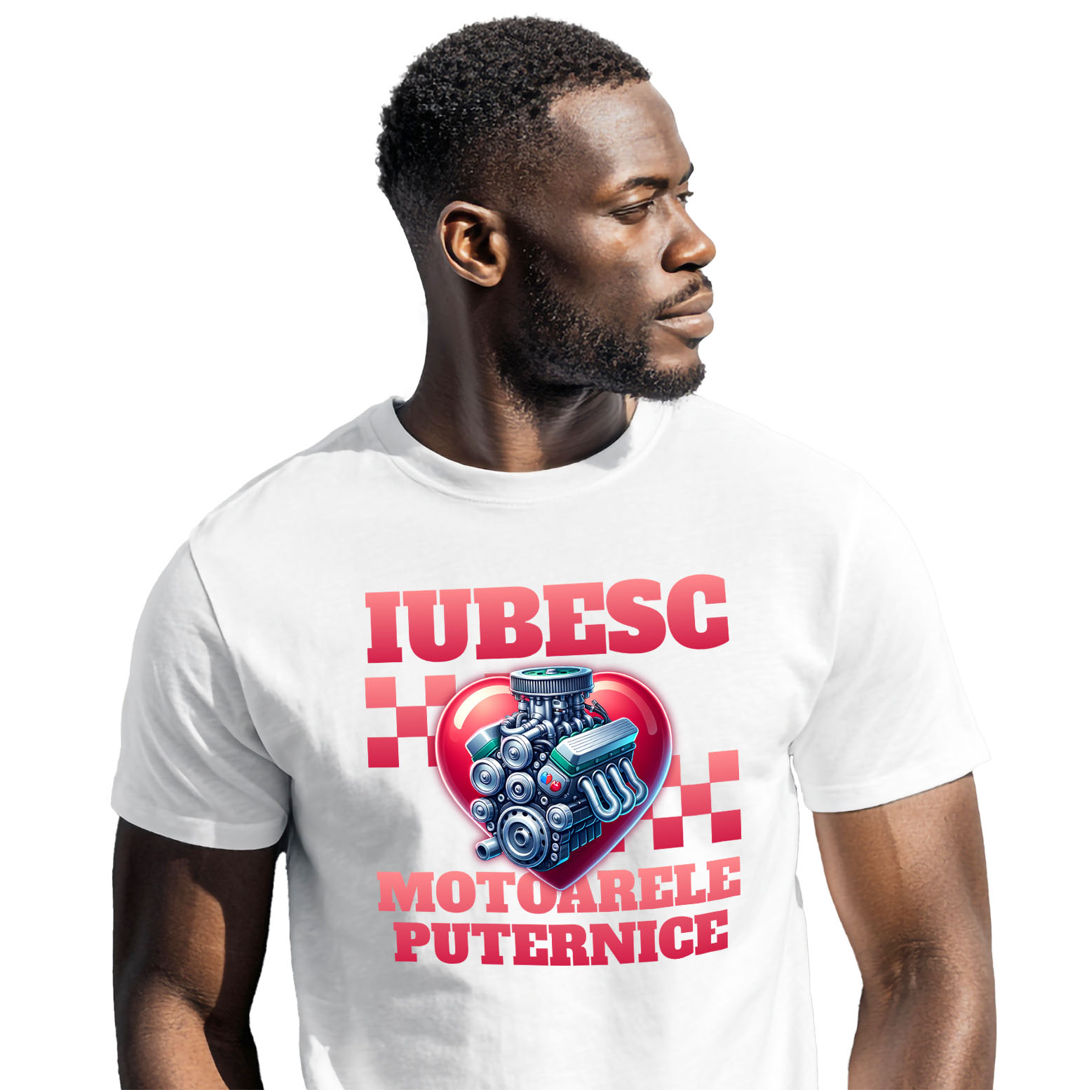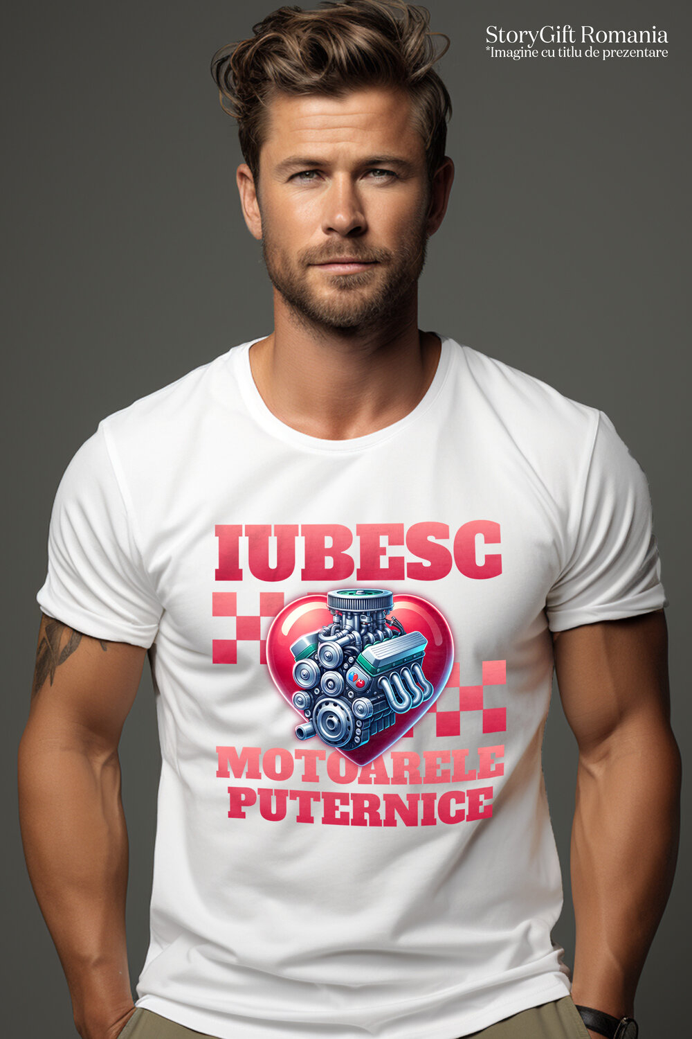 Tricou Barbati cu Motor Masina Viteza Curse Ilegale Iubire Motoarele Puternice cu imprimeu pe Fata, 100% Bumbac, Alb, M