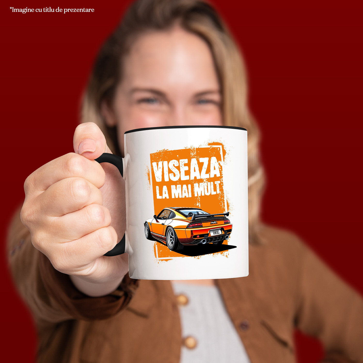 Cana Personalizata cu Masina De Curse Modificata Portocalie Motivational, Ceramica, 330ML, cu Maner Negru