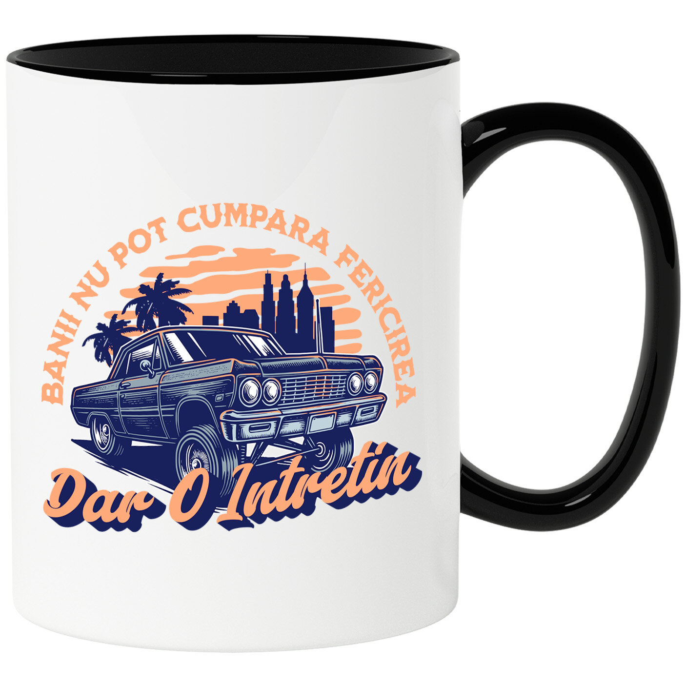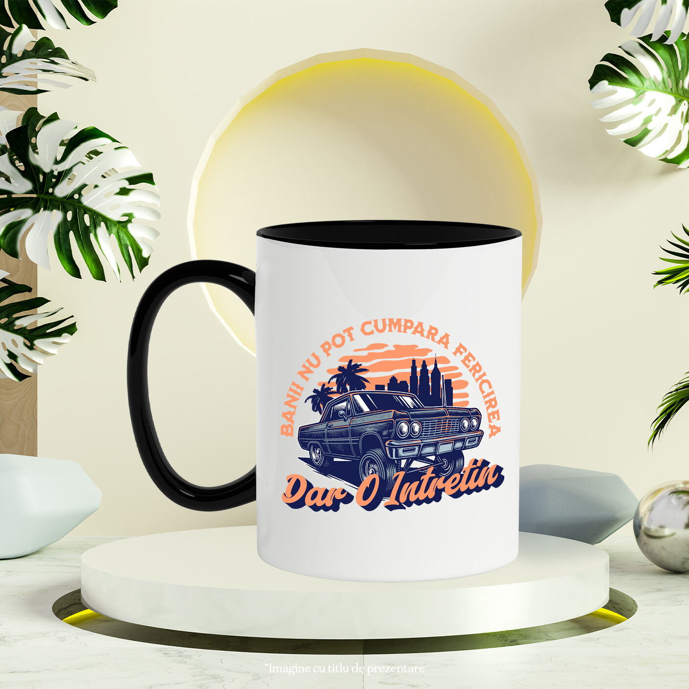Cana Personalizata cu Masina Vintige In Oras Cladiri Inalte Viteza Curse Ilegale , Ceramica, 330ML, cu Maner Negru