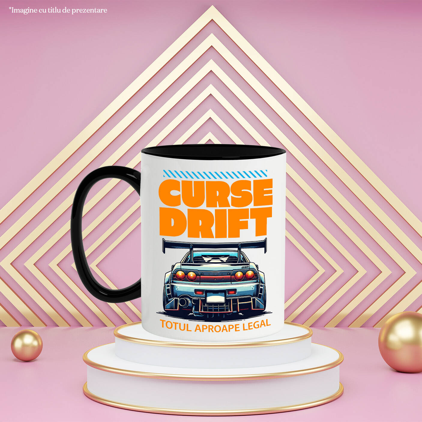 Cana Personalizata cu Spate Masina Drift Cu Tunning Curse Drift Legal Viteza , Ceramica, 330ML, cu Maner Negru