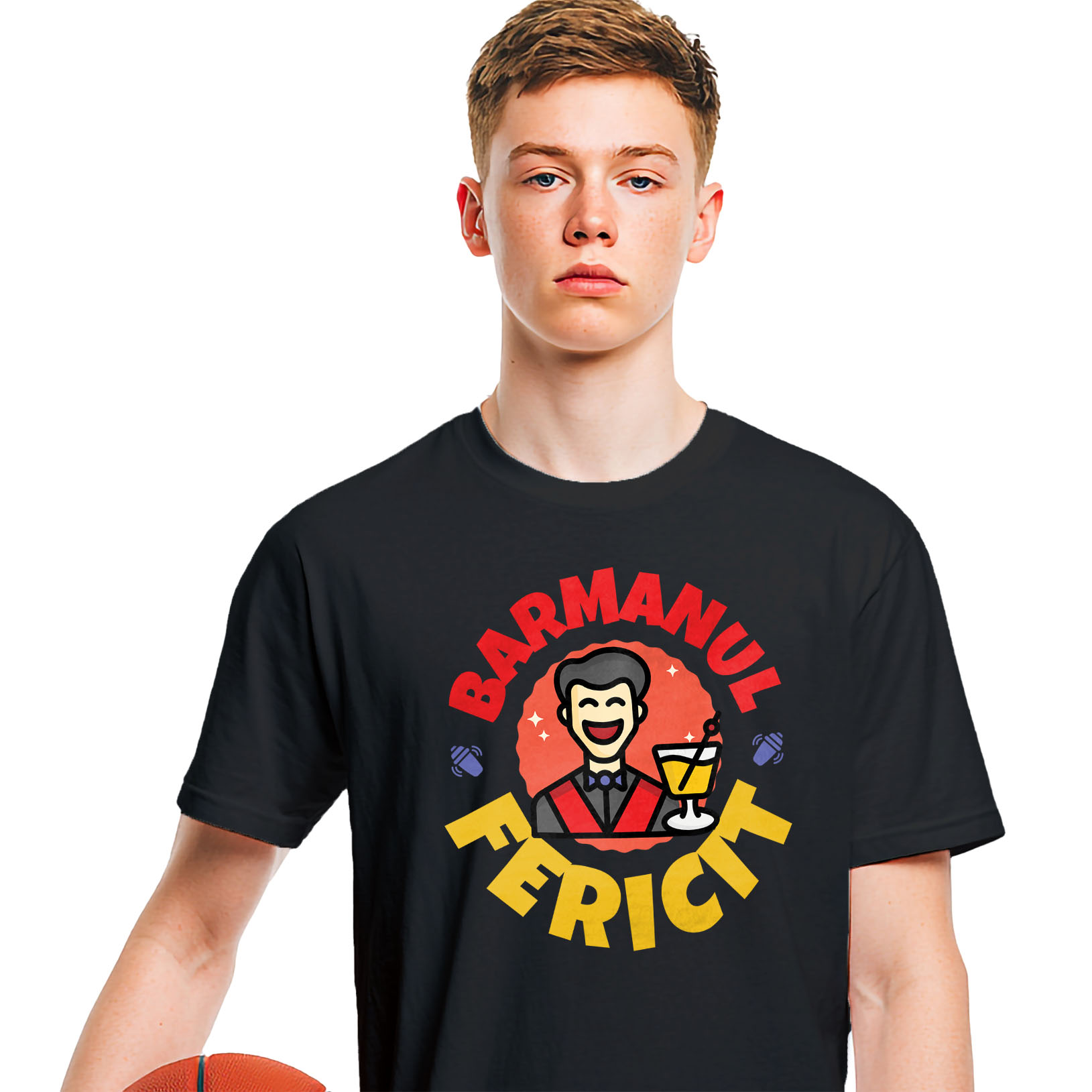 Tricou Barbati cu Barbat Animatie Vesel Cu Pahar Bautura Meserie Horeca Pasiune cu imprimeu pe Fata, 100% Bumbac, Negru, L