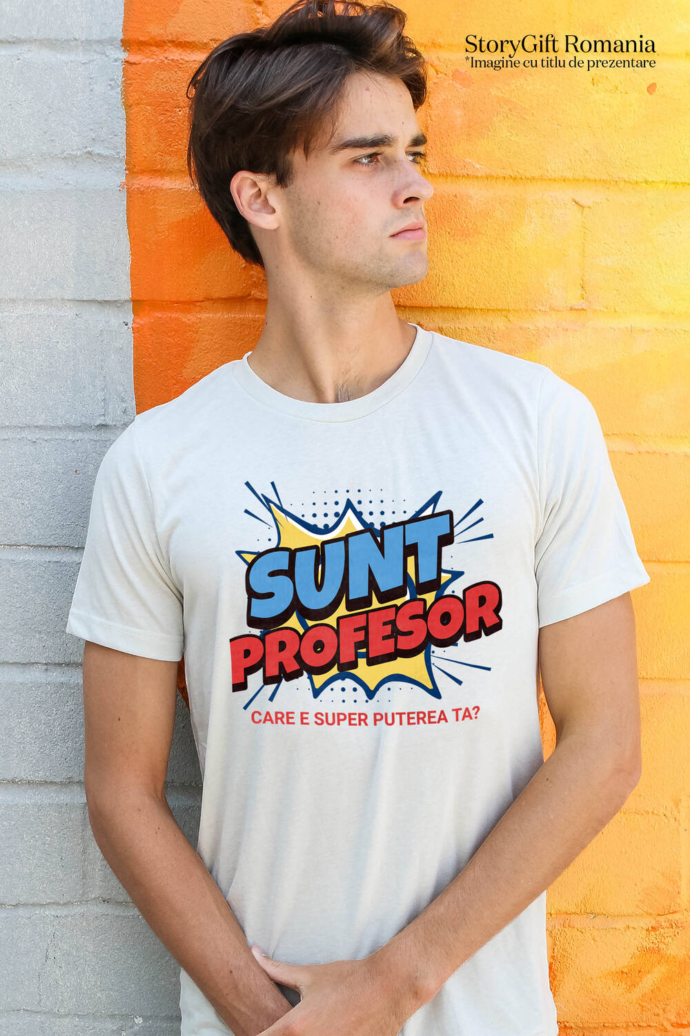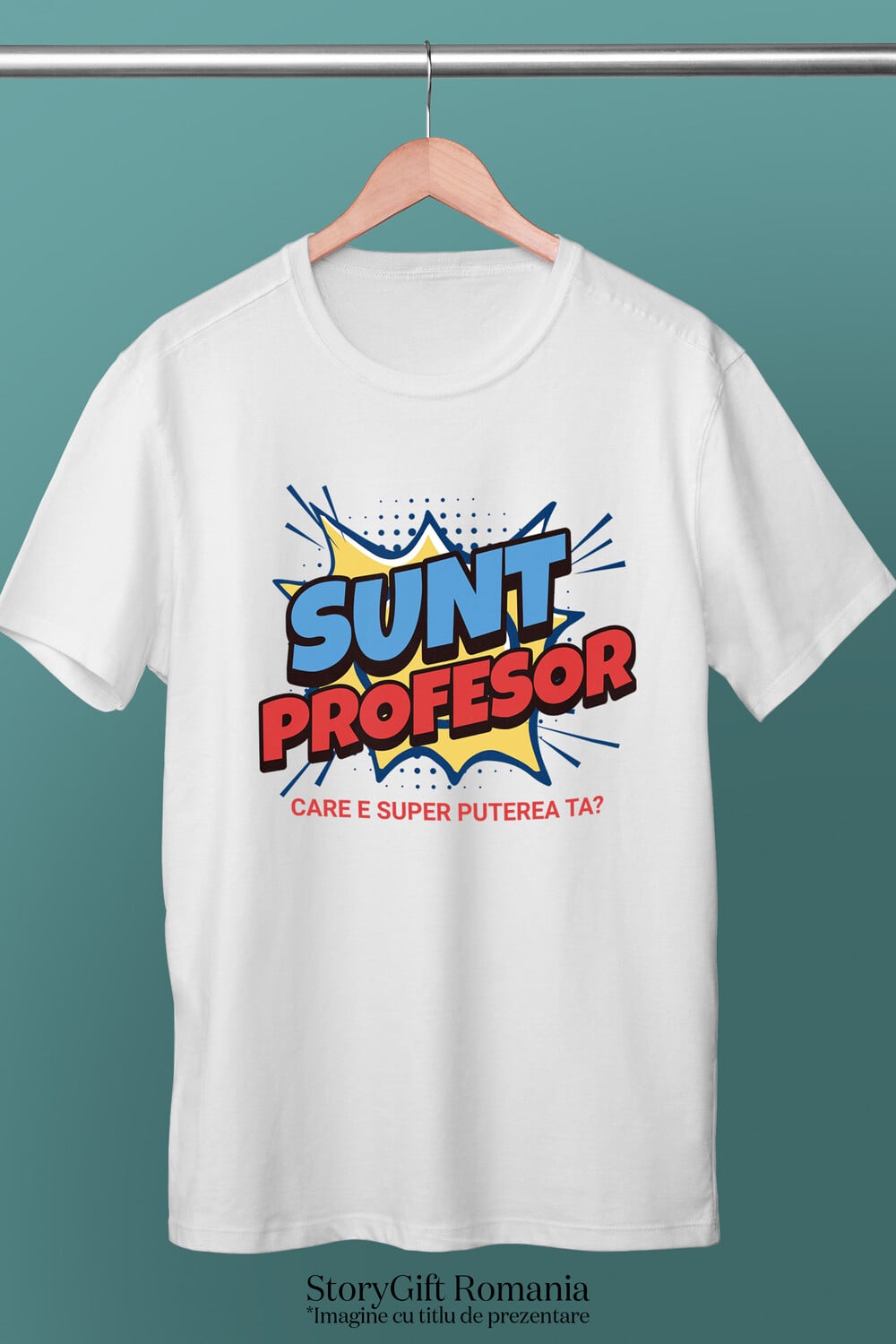 Tricou Barbati cu Design stil desene Animate Copii Super erou meserie Super Profesor cu imprimeu pe Fata, 100% Bumbac, Alb, L