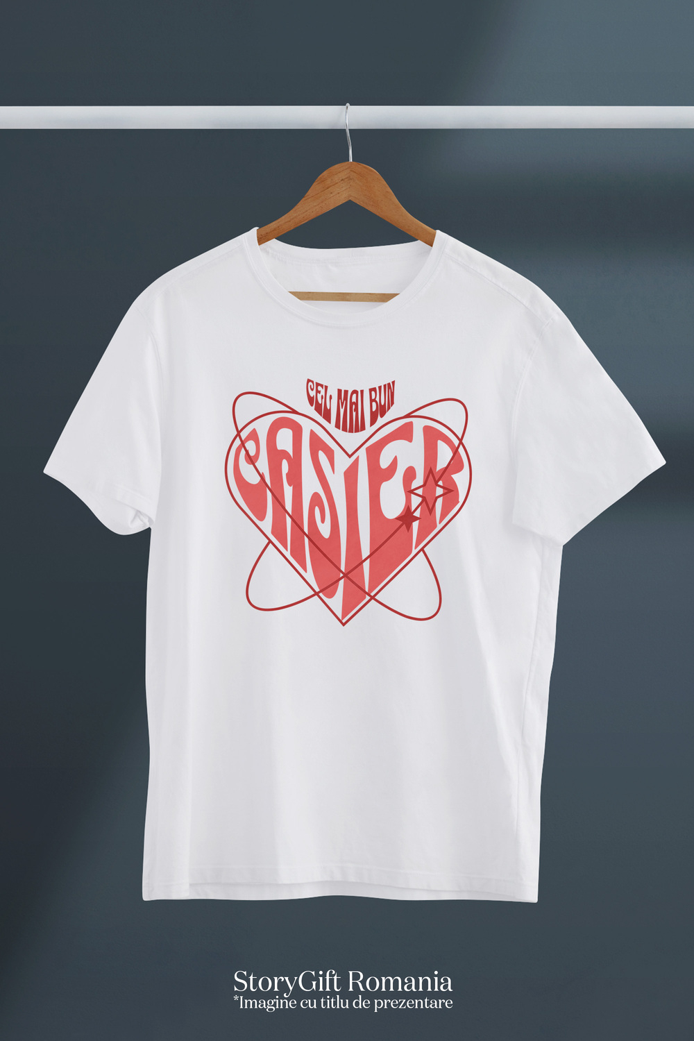 Tricou Barbati cu Iluzie Optica Inima Munca Meserie Dragobete Casier cu imprimeu pe Fata, 100% Bumbac, Alb, M