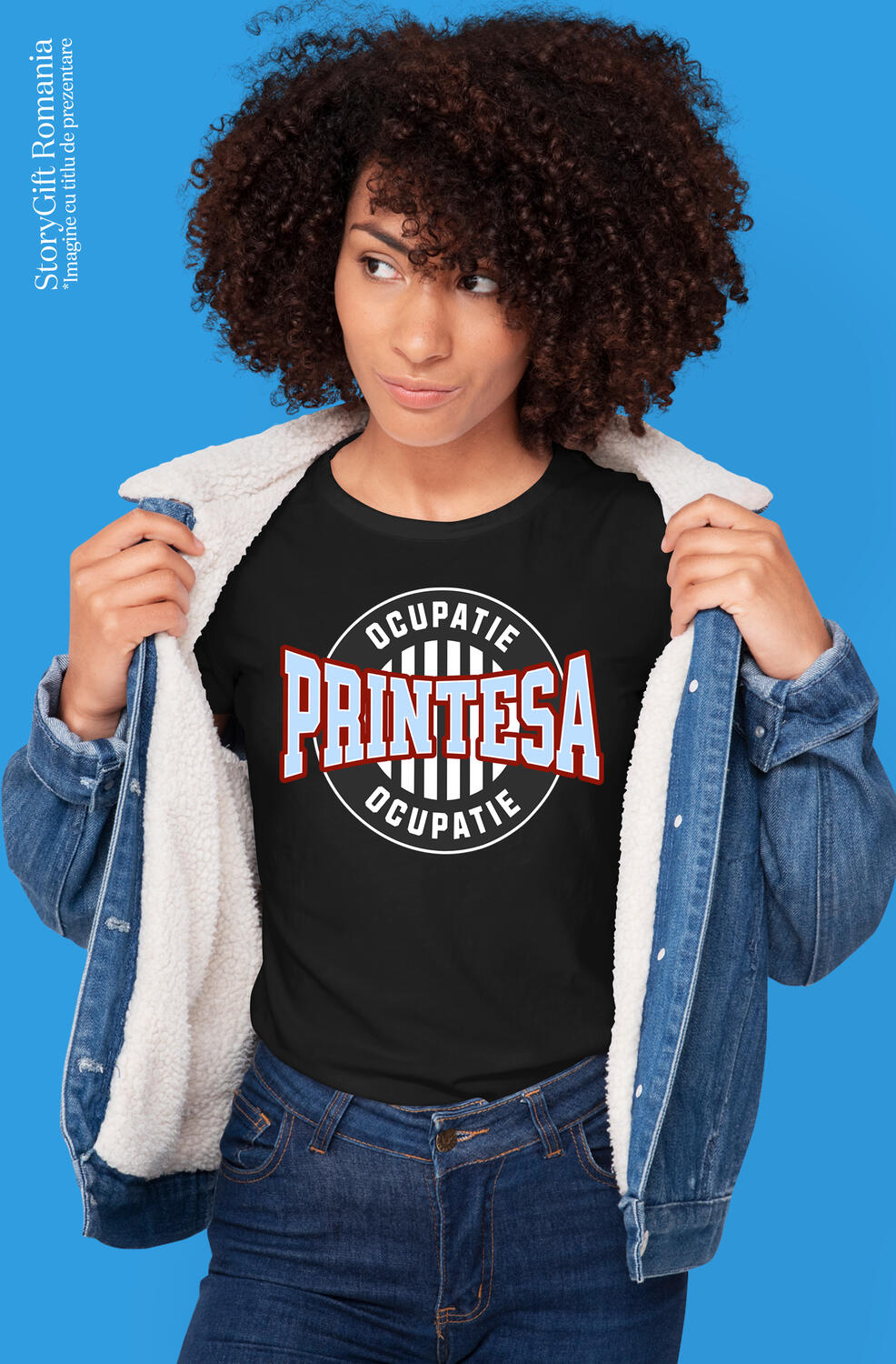 Tricou Femei cu Iluzie Optica Insigna Ocupatie Printesa Femeie Regala Gluma cu imprimeu pe Fata, 100% Bumbac, Negru, M