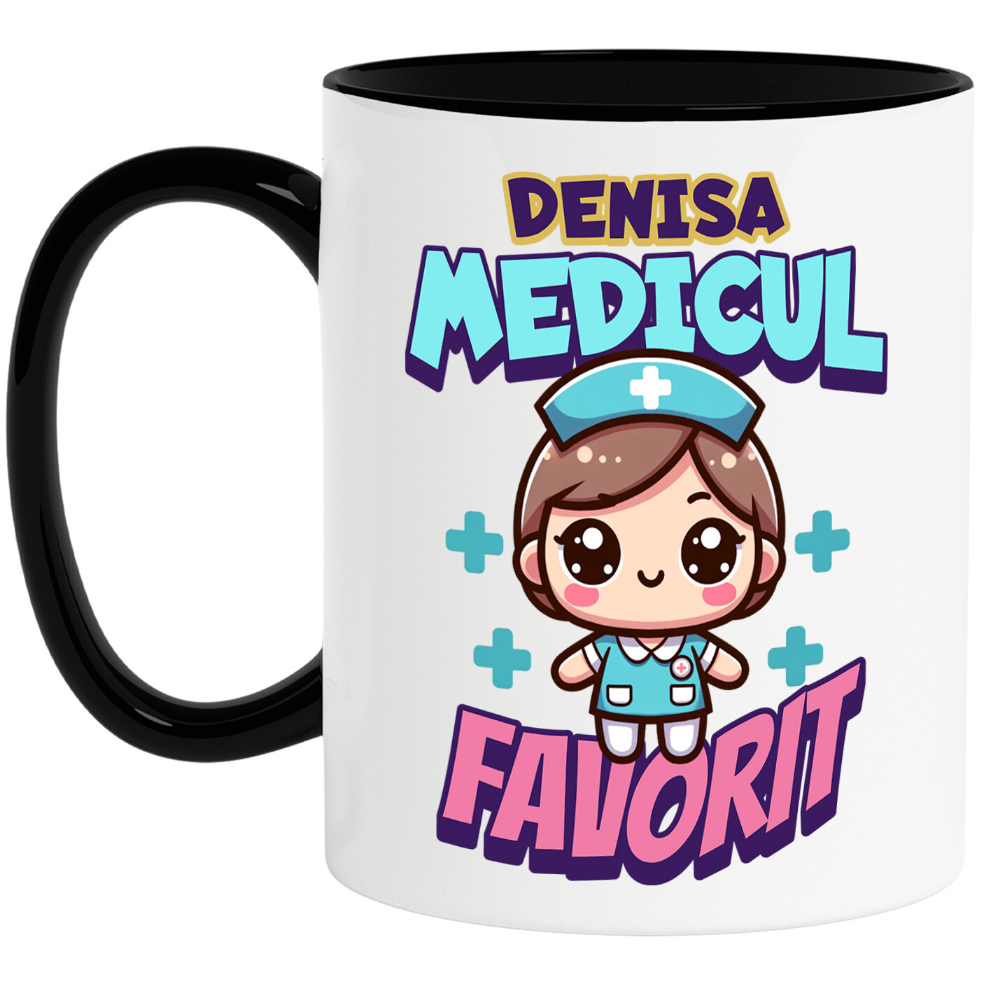 Cana Personalizata cu Asistenta medicala Cu Tinuta Albastra Pasiune Meserie , Ceramica, 330ML, cu Maner Negru