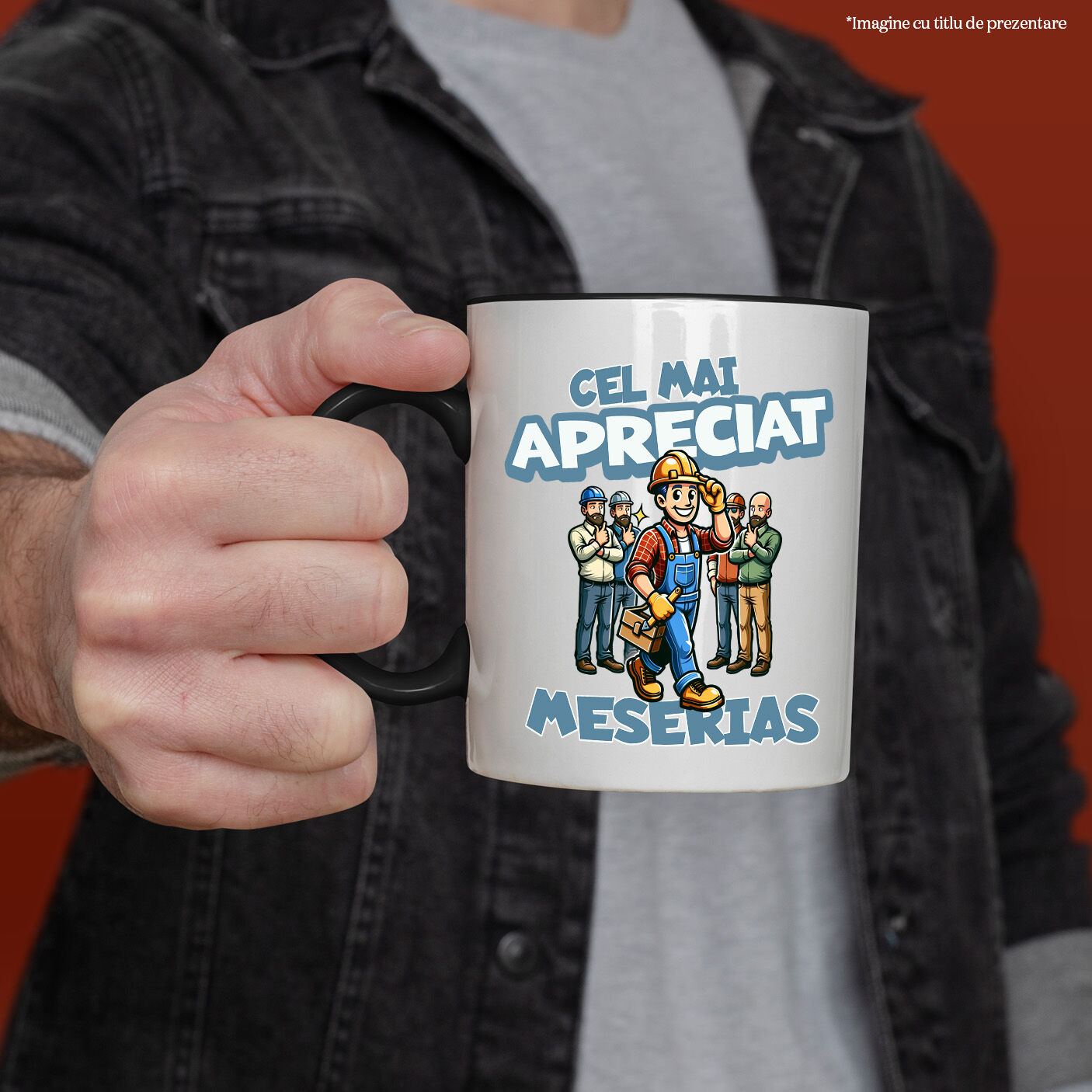 Cana Personalizata cu Barbat In Salopeta Albastra Cu Palarie De Protectie Vesel Meserie , Ceramica, 330ML, cu Maner Negru