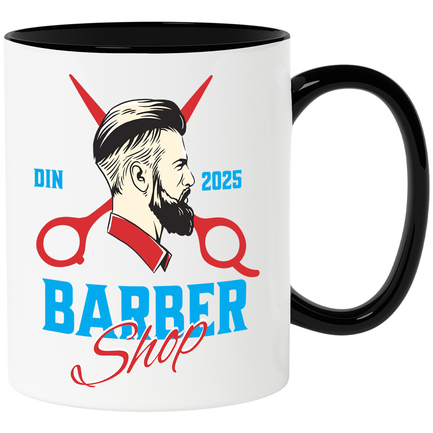 Cana Personalizata cu Barbat Profil uman Intrumente Frizerie Barber Shop Meserie Pasiune, Ceramica, 330ML, cu Maner Negru