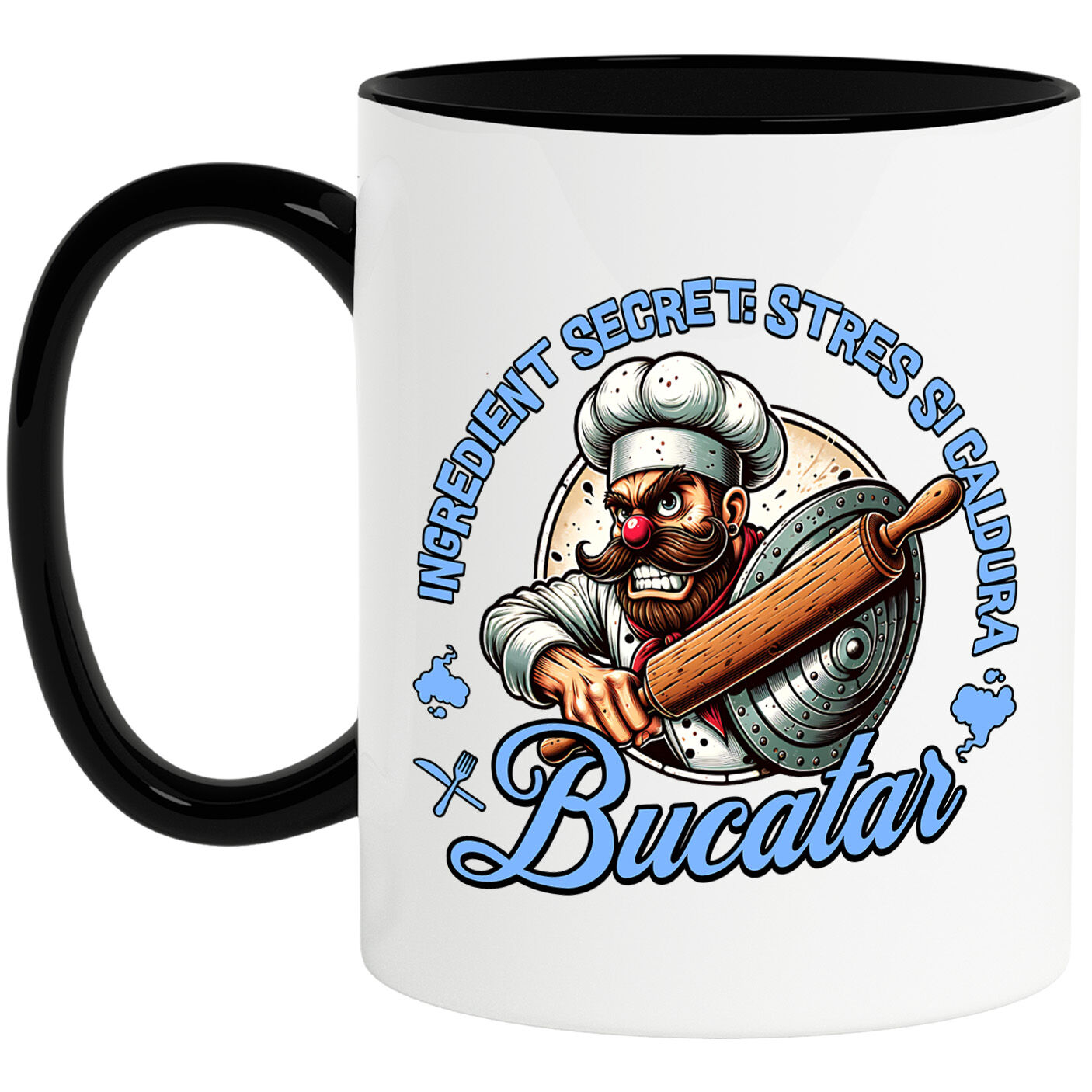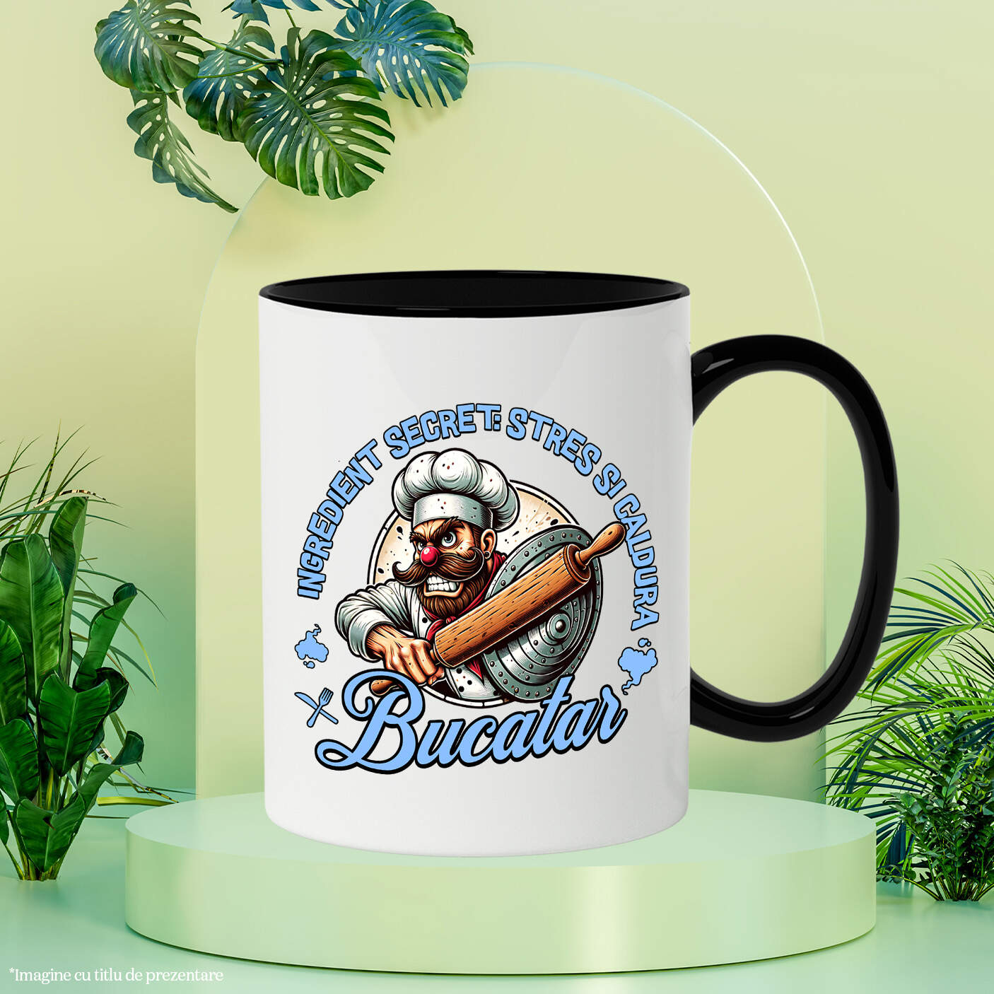 Cana Personalizata cu Bucatar Cheff Cu Palarie Inalta Si Mustata Meserie Mancare Pasiune, Ceramica, 330ML, cu Maner Negru