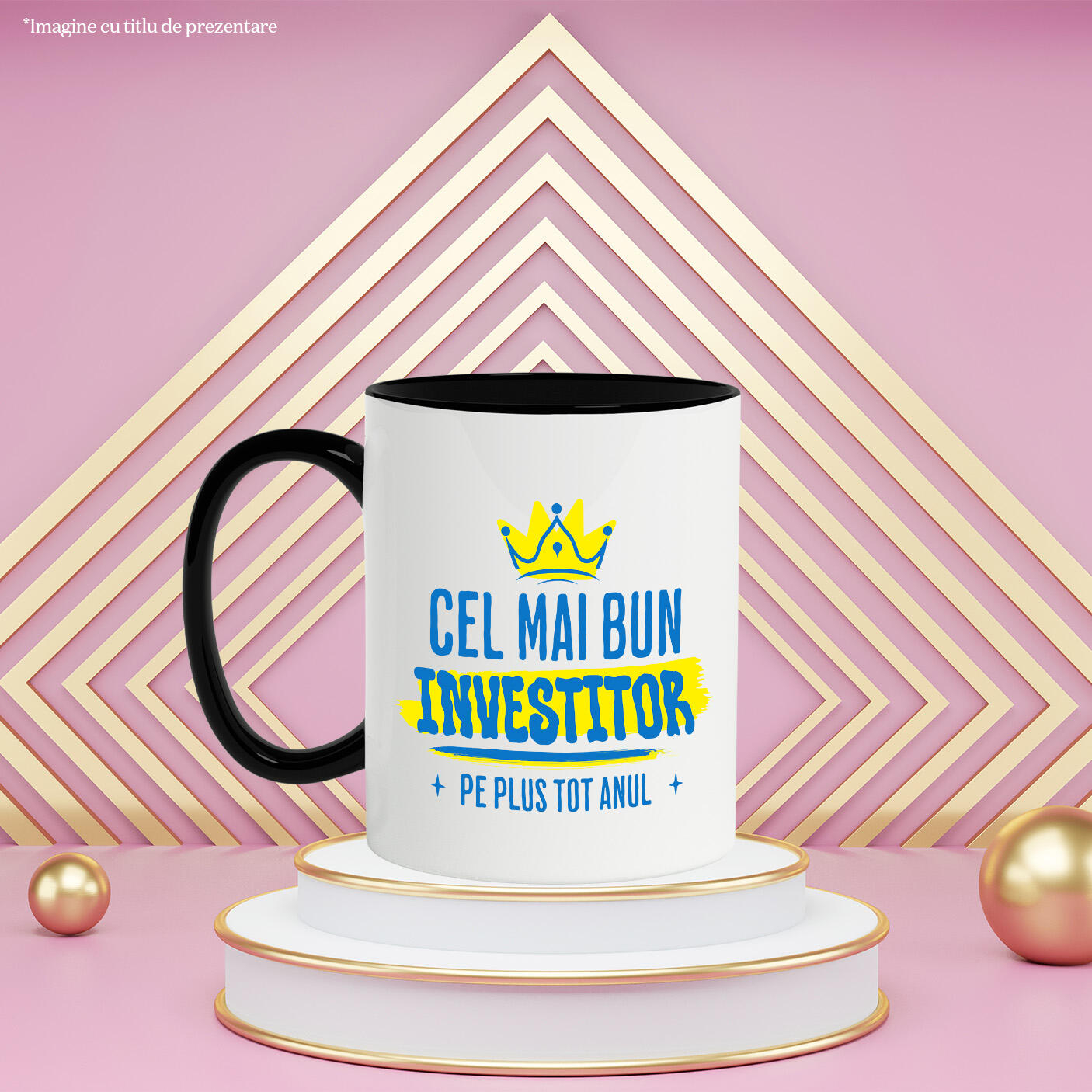 Cana Personalizata cu Coroana Regala Investitii Meseri Investitor Bani Financiar , Ceramica, 330ML, cu Maner Negru
