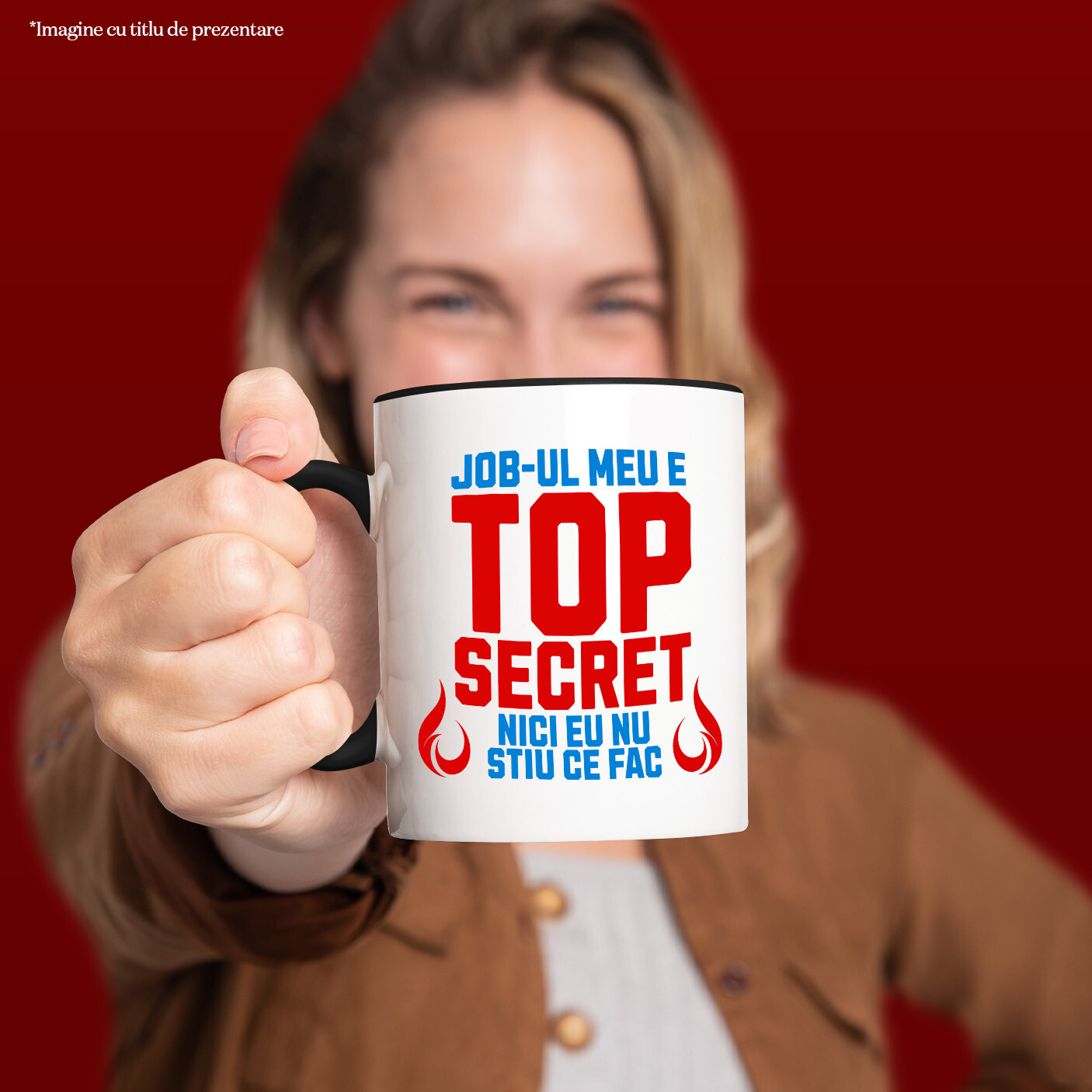 Cana Personalizata cu Design Haios In Limba Romana Flacari, Procrastinare, Meserie, Ceramica, 330ML, cu Maner Negru